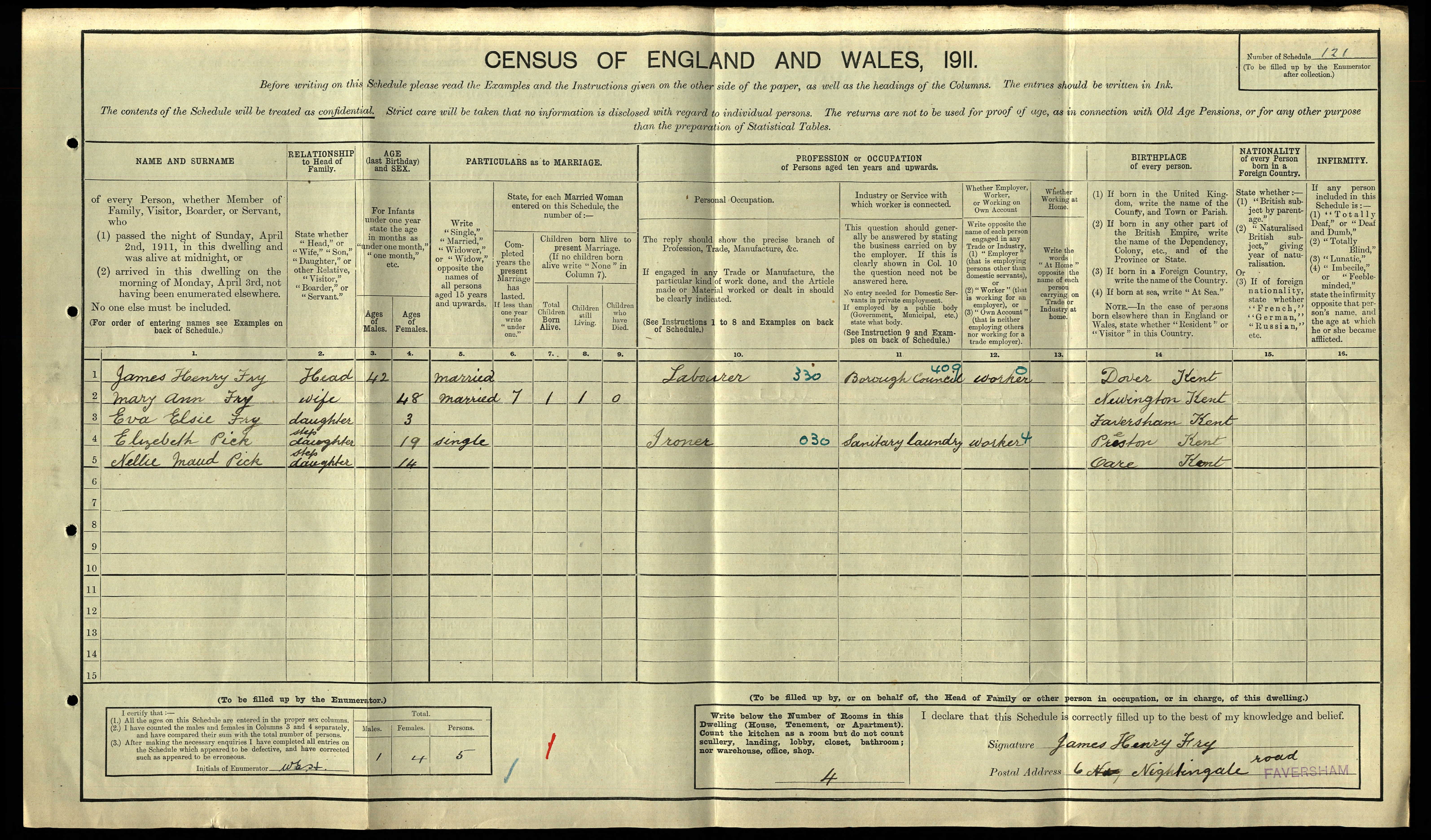 • Lived at: 6 Nightingale Road, 1911, Faversham, Kent, England. |
