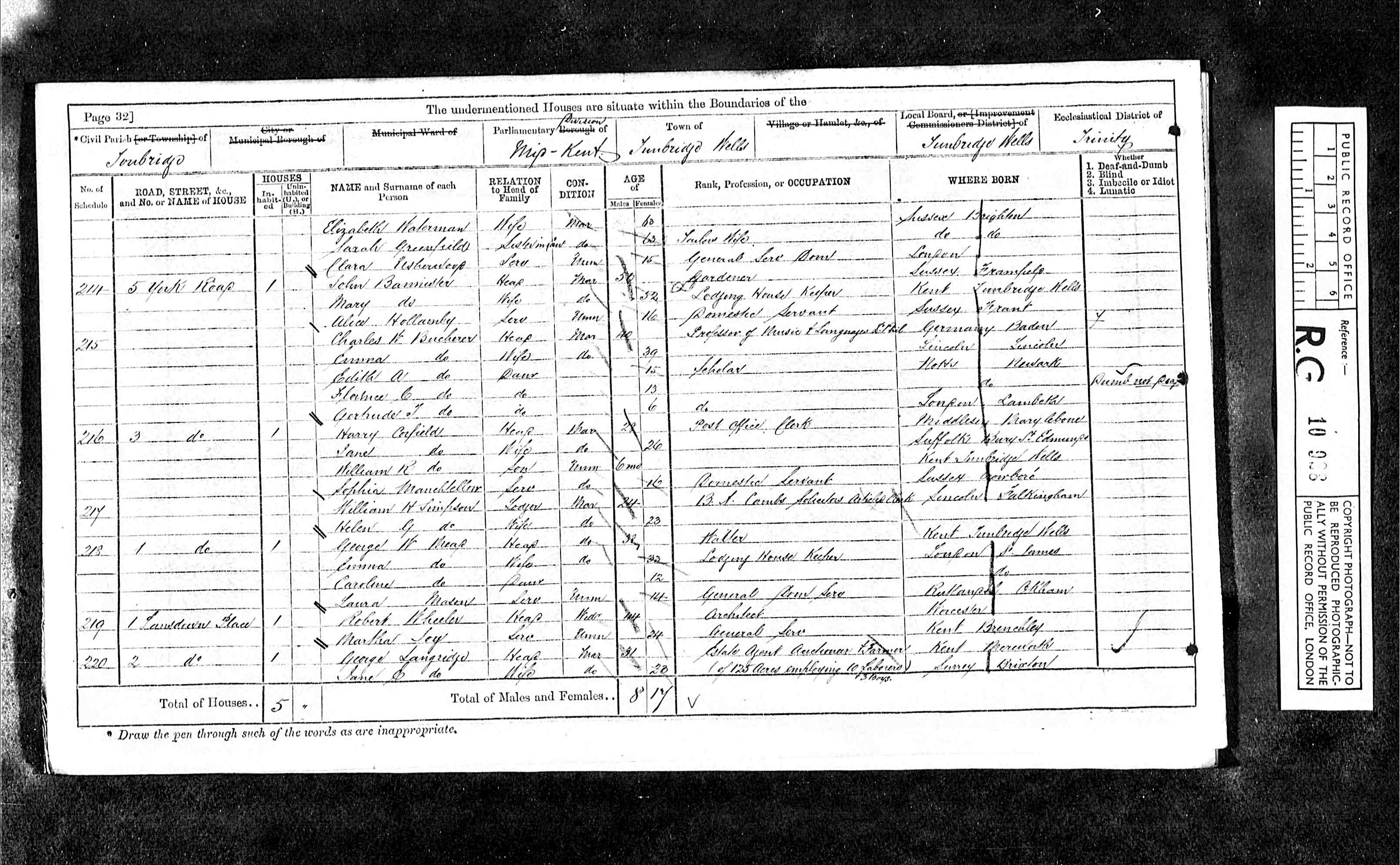 • Lived at: 2 Langdrige Place, 1871, Tunbridge Wells, Kent, England. 8