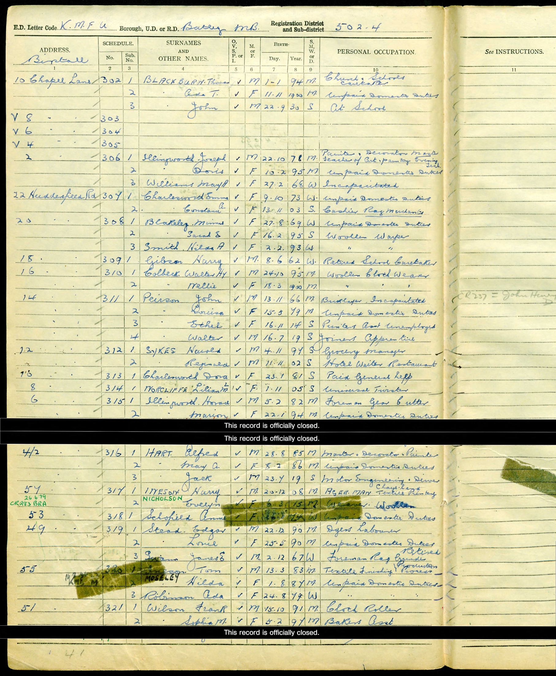 • Occupation: Motor Engineering Driver, 1939, Batley, Yorkshire, England. |