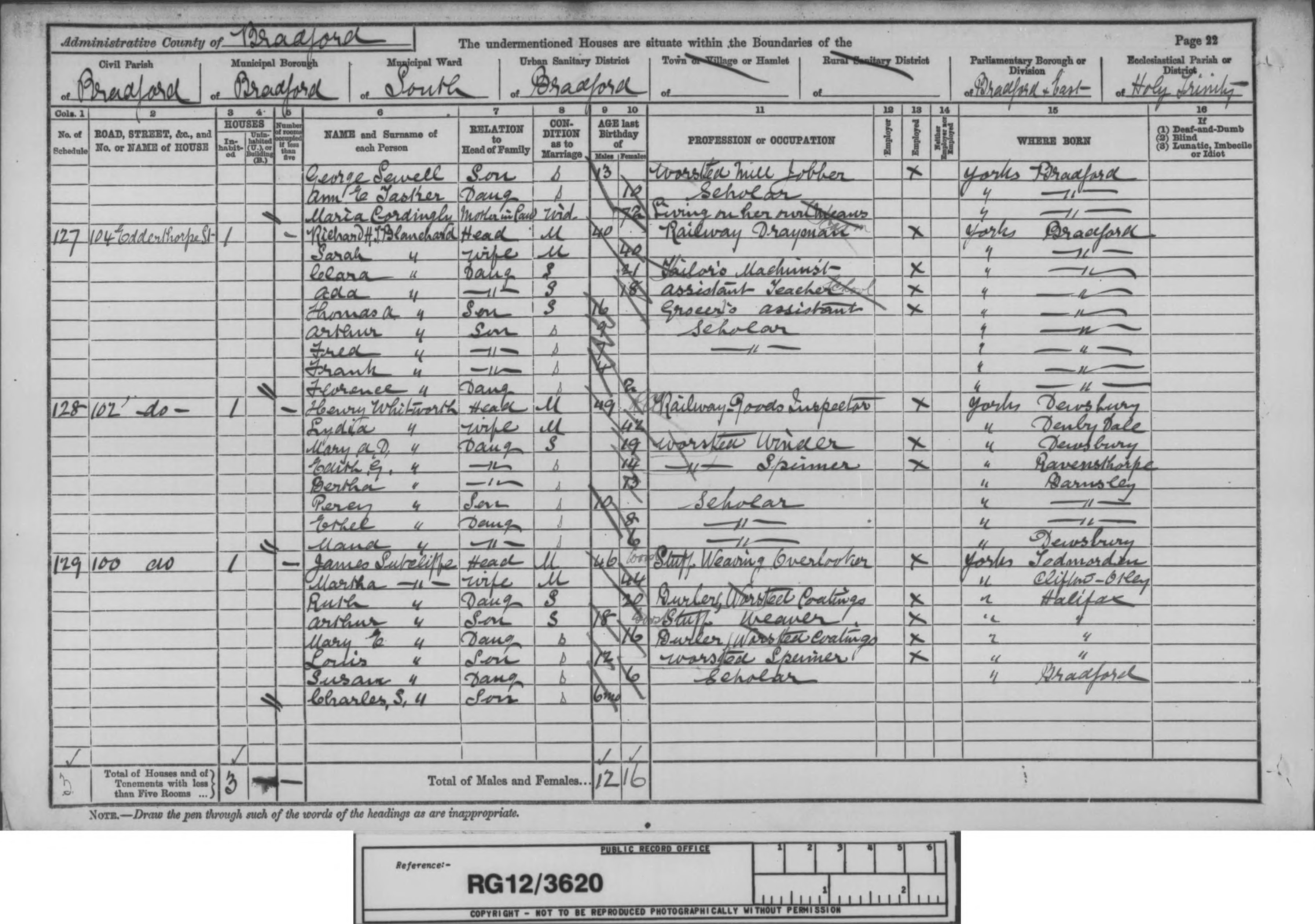 • Lived at: 1390 Leeds Road, 1911, Bradford, Yorkshire, England.