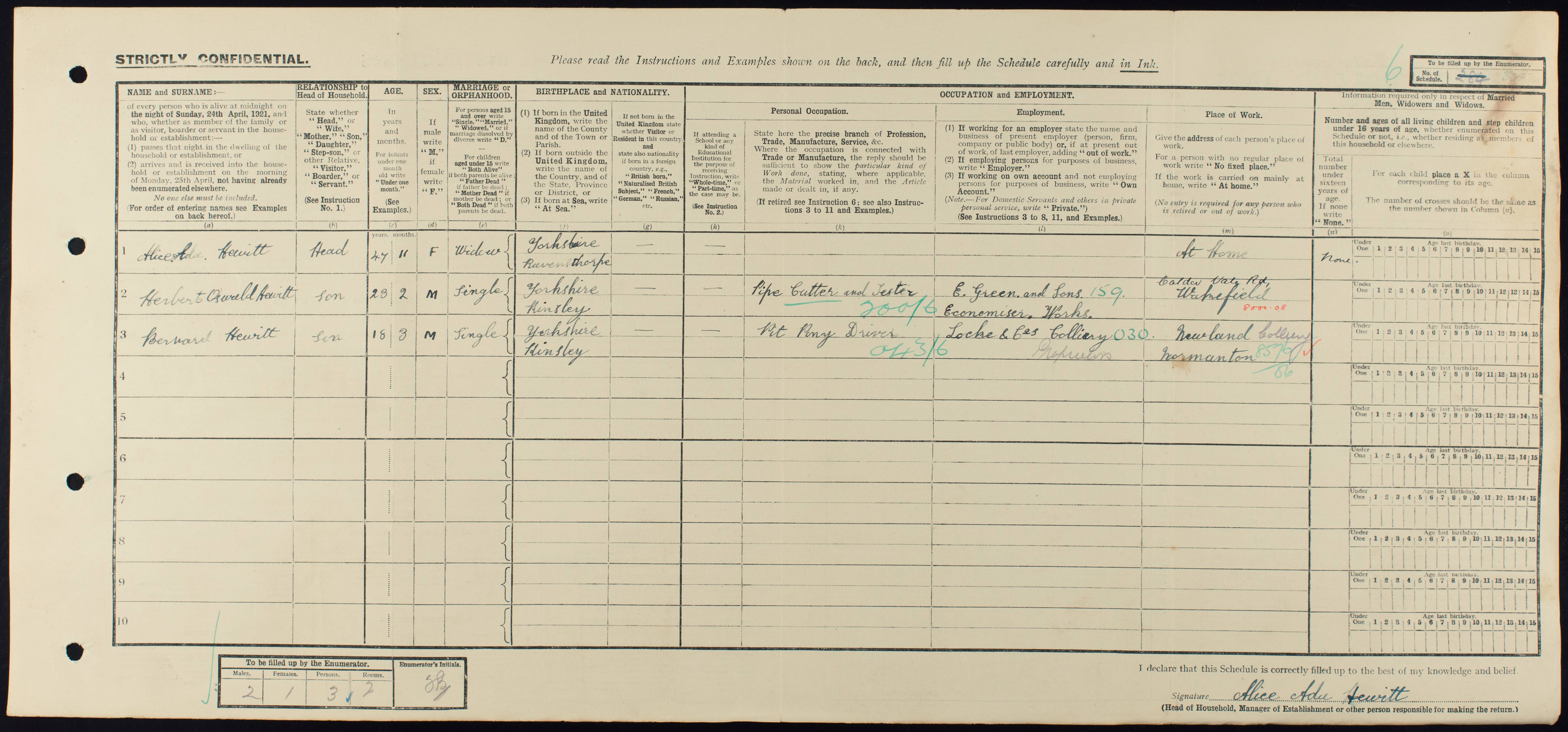 • Lived at: 3 Waterloo Street, 1921, Wakefield, Yorkshire (West Riding), England.
