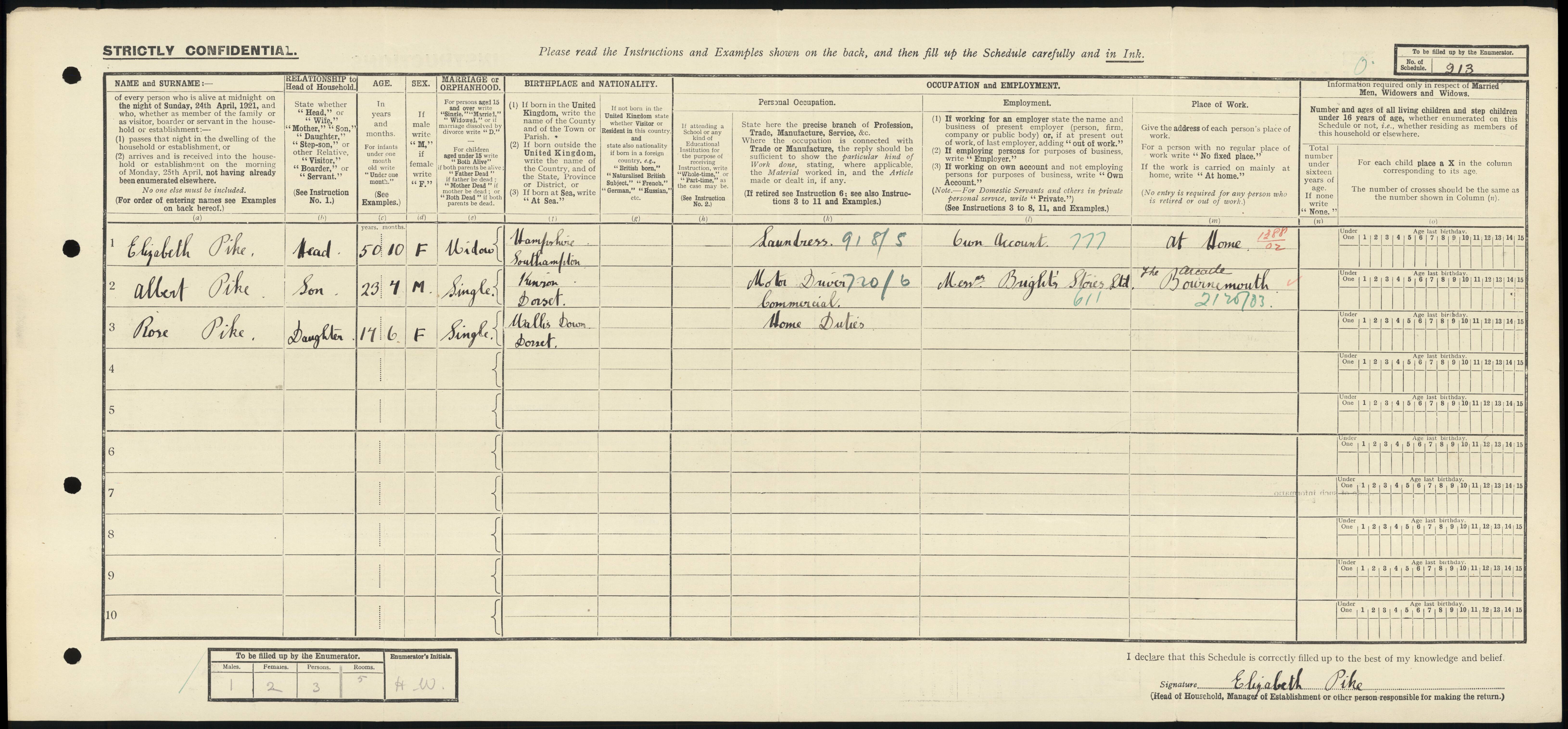 • Lived at: Kinson Road Walter Down, 1921, Bournemouth, Kinson, Dorset, England.
