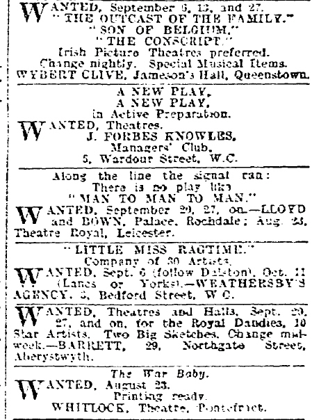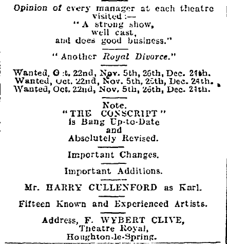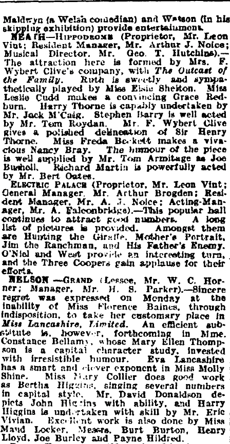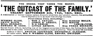 Performed: The Outcast of the Family, 1910, Neath Hippodrome.