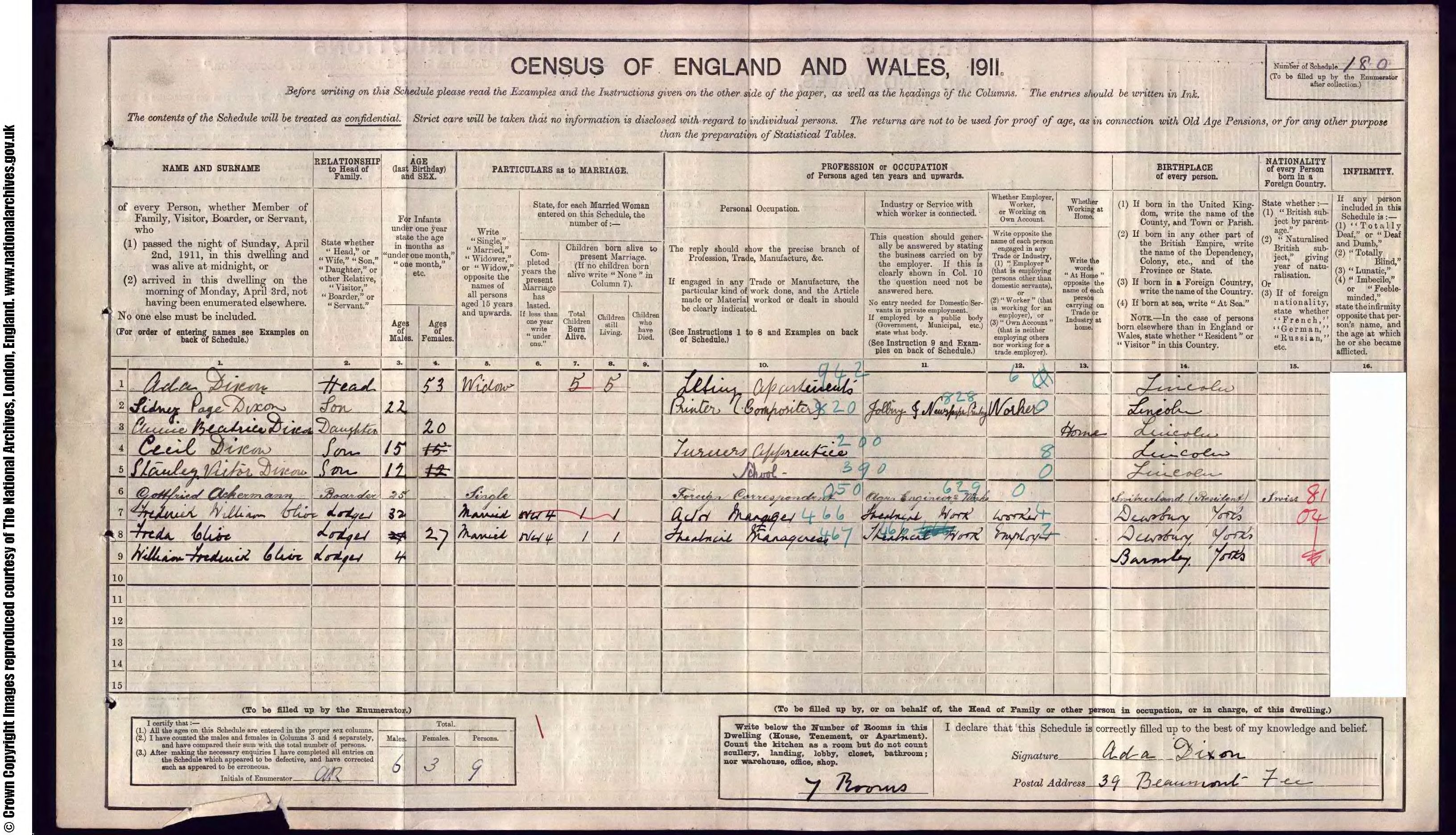 Boarded: 39 Beaumont Fee, 1911, Lincoln, Lincolnshire, England. Occupation: Actor Manager, 1911, Lincoln, Lincolnshire, England.