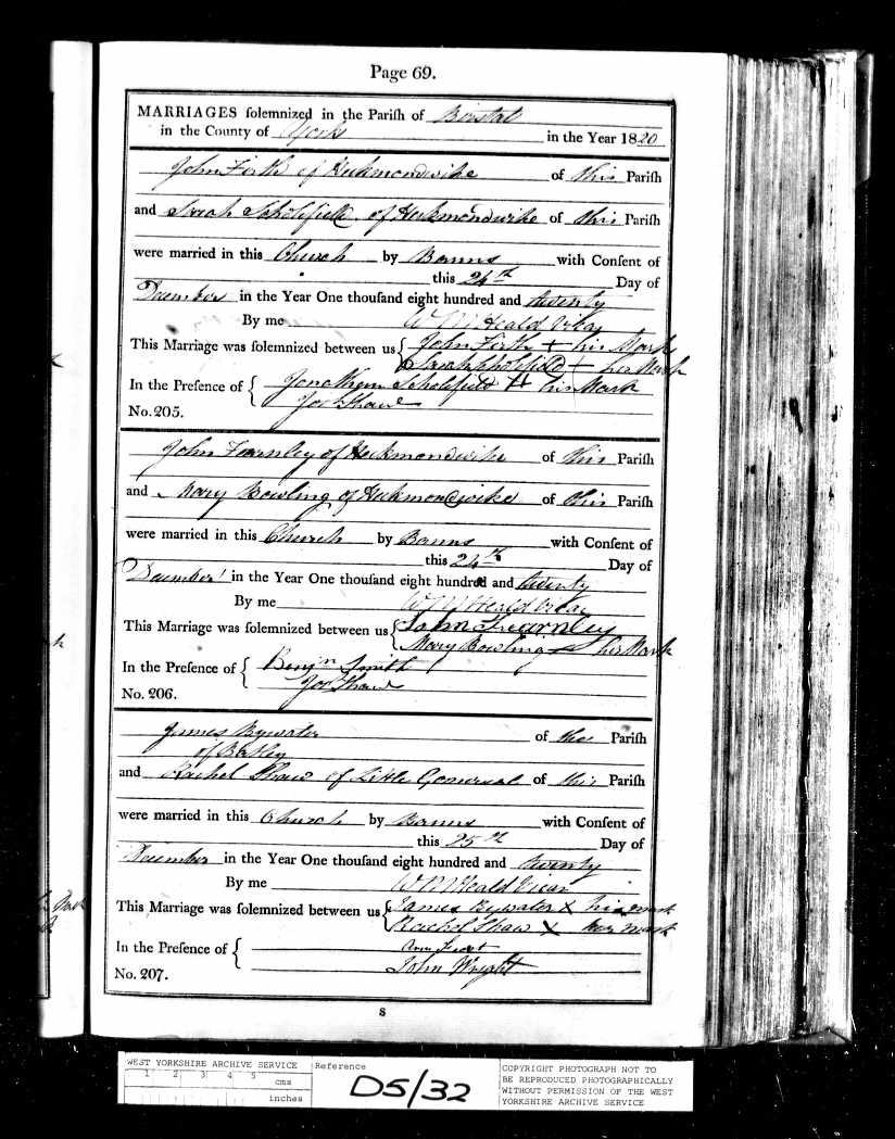 Events • Lived at: Heckmondwike, 1841. Mary married John Fearnley on 24 Dec 1820 in Birstall, Yorkshire, England. (John Fearnley was born circa 1799 and died after 1841.) |
