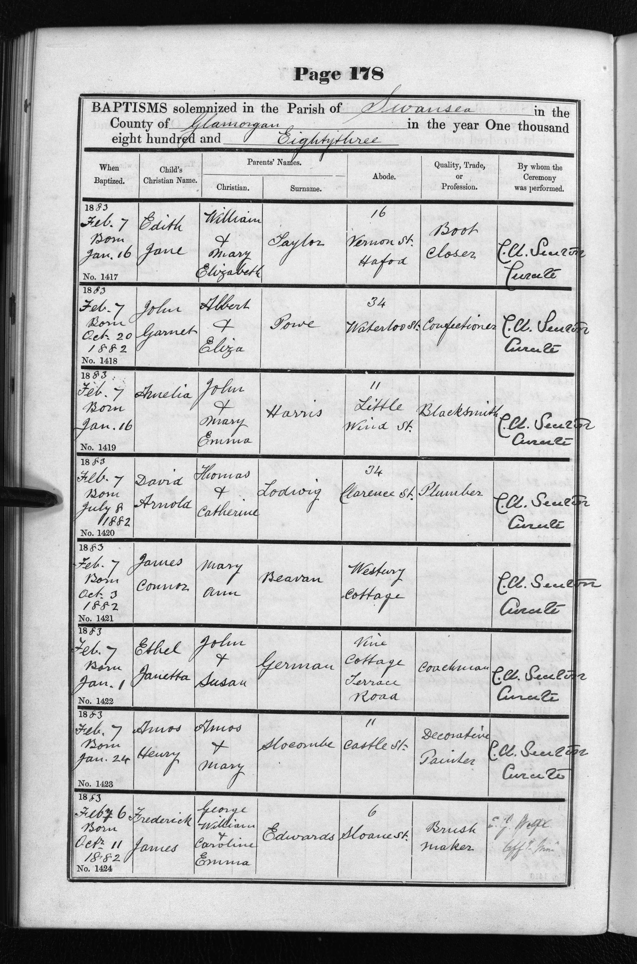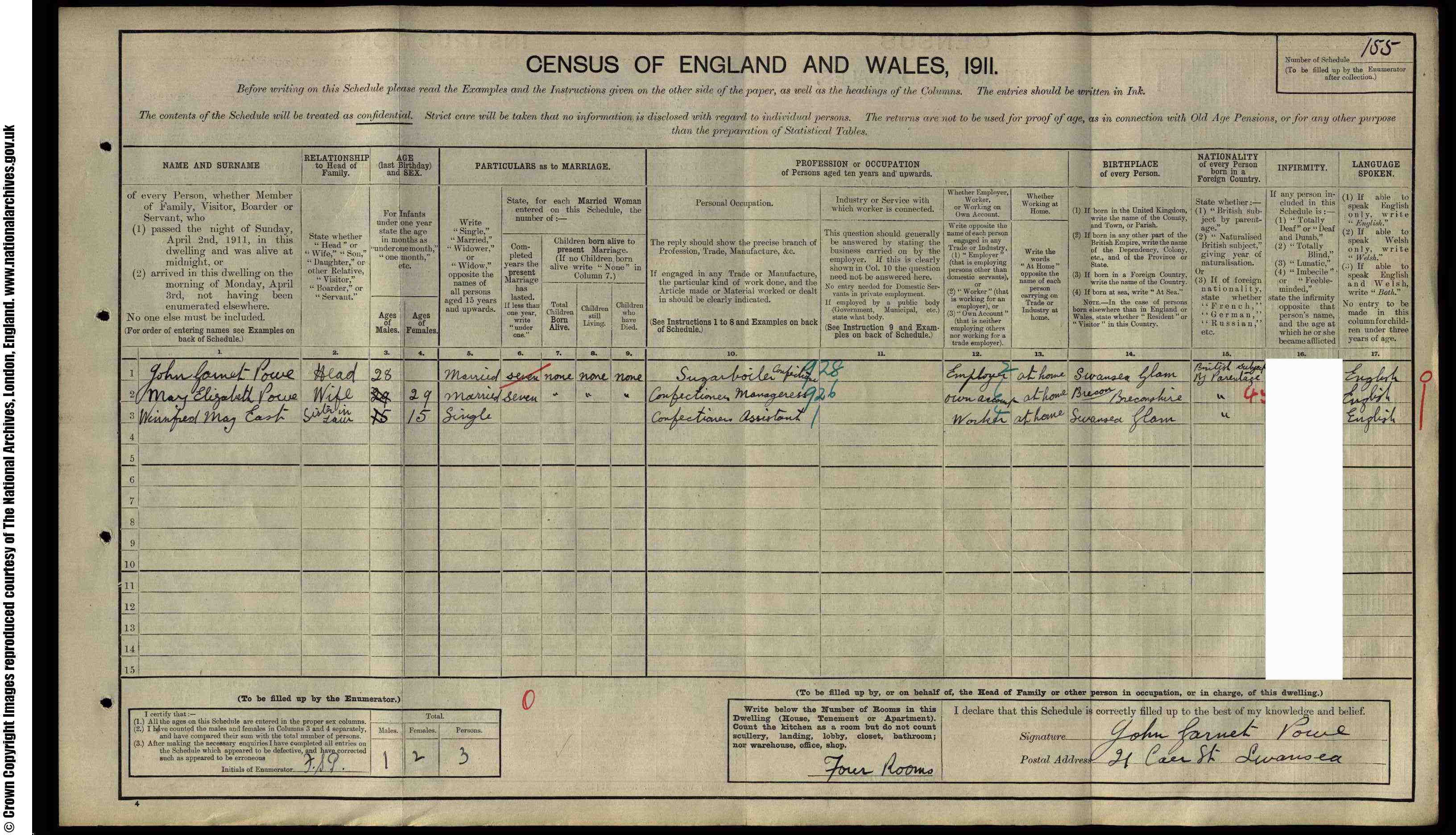 • Occupation: Sugar Boiler Confectioner, 1921, Swansea.