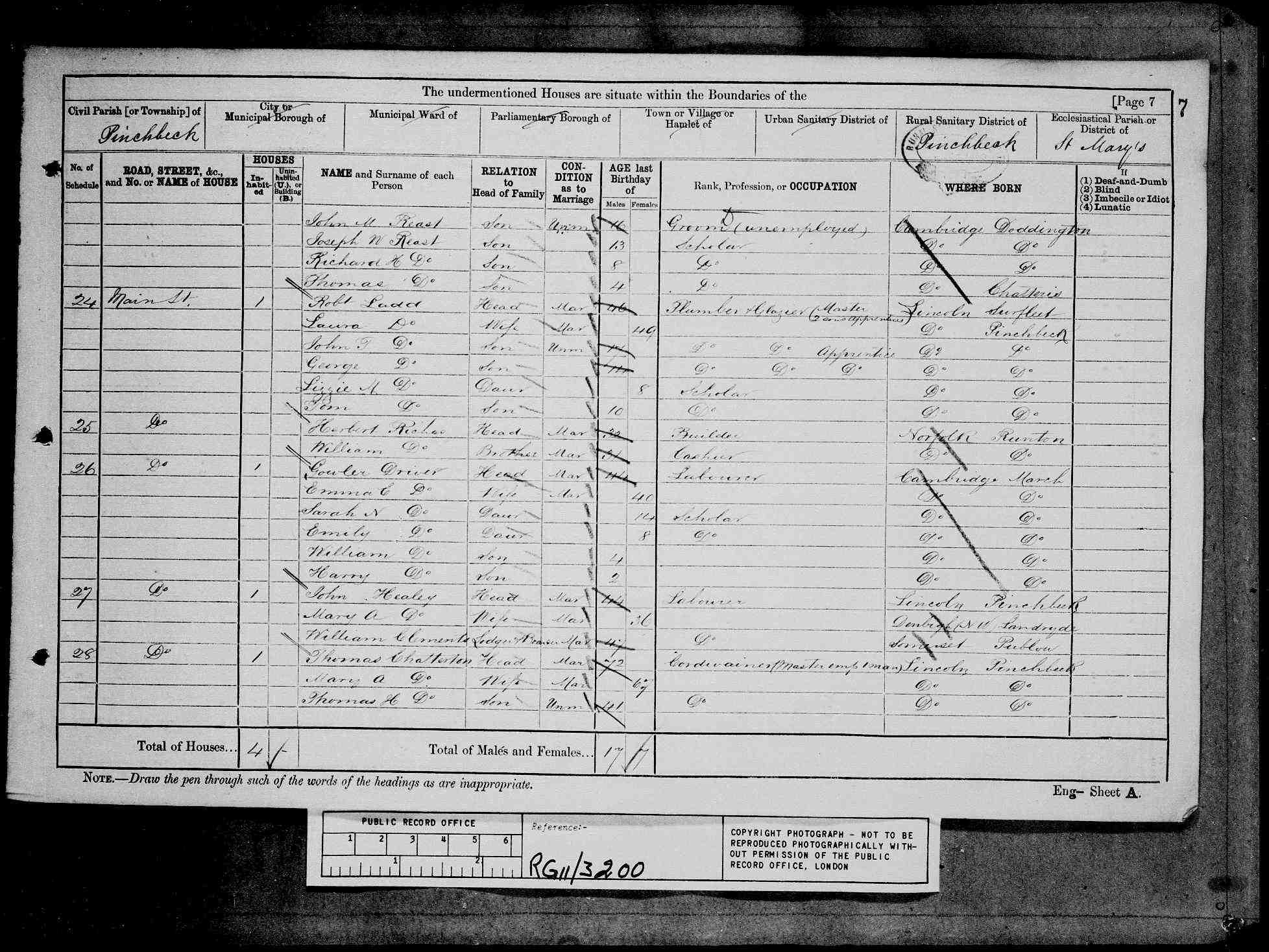 • Lived at: Main Street, 1881, Pinchbeck, Lincolnshire, England.
