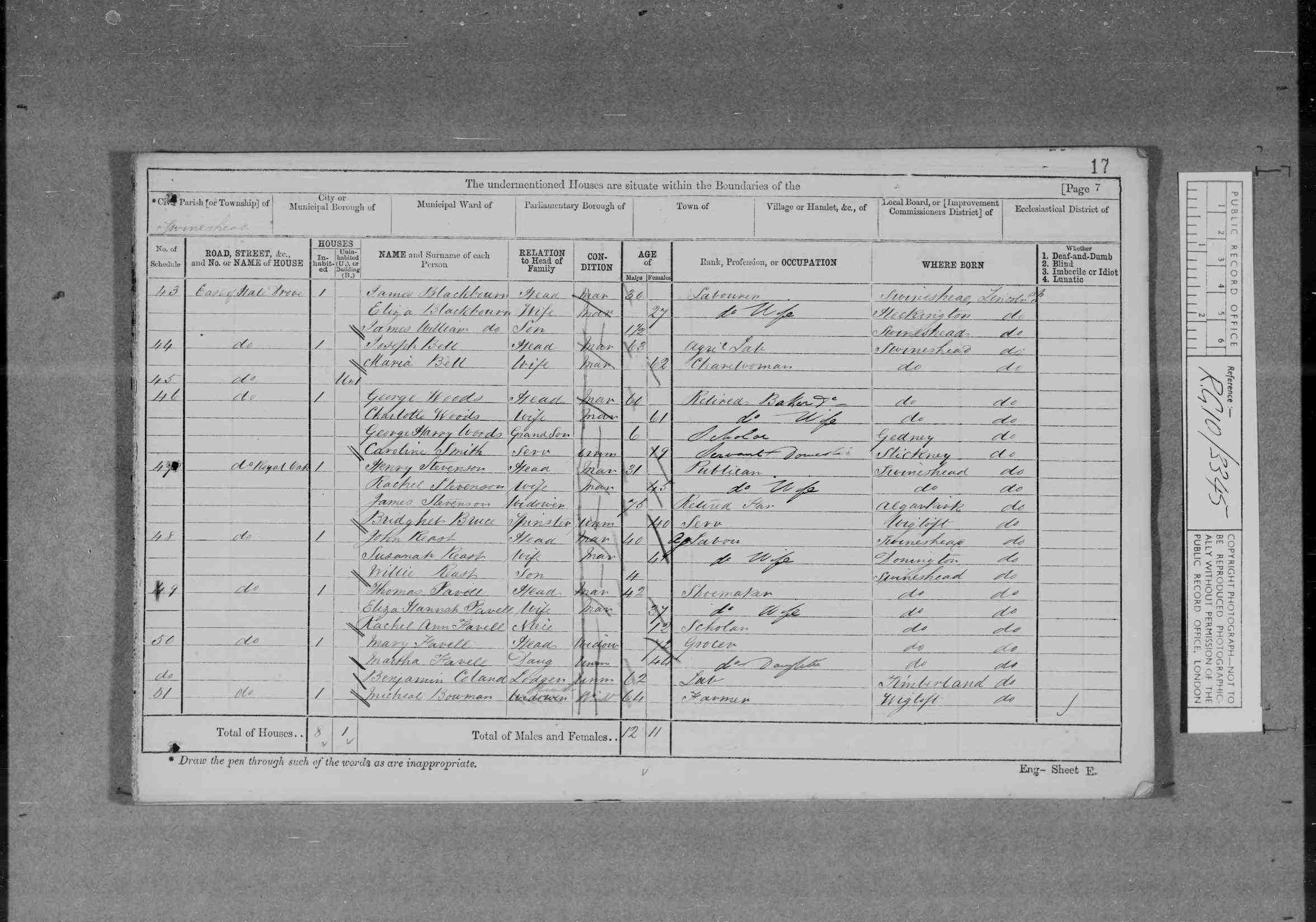 • Occupation: labourer, 1871, Swineshead Bridge. • Occupation: Labourer, 1881, Boston, Lincolnshire, England. John married Susannah Atkinson. (Susannah Atkinson was born circa 1830 in Donnington, Lincolnshire, England and died after 1911.) |