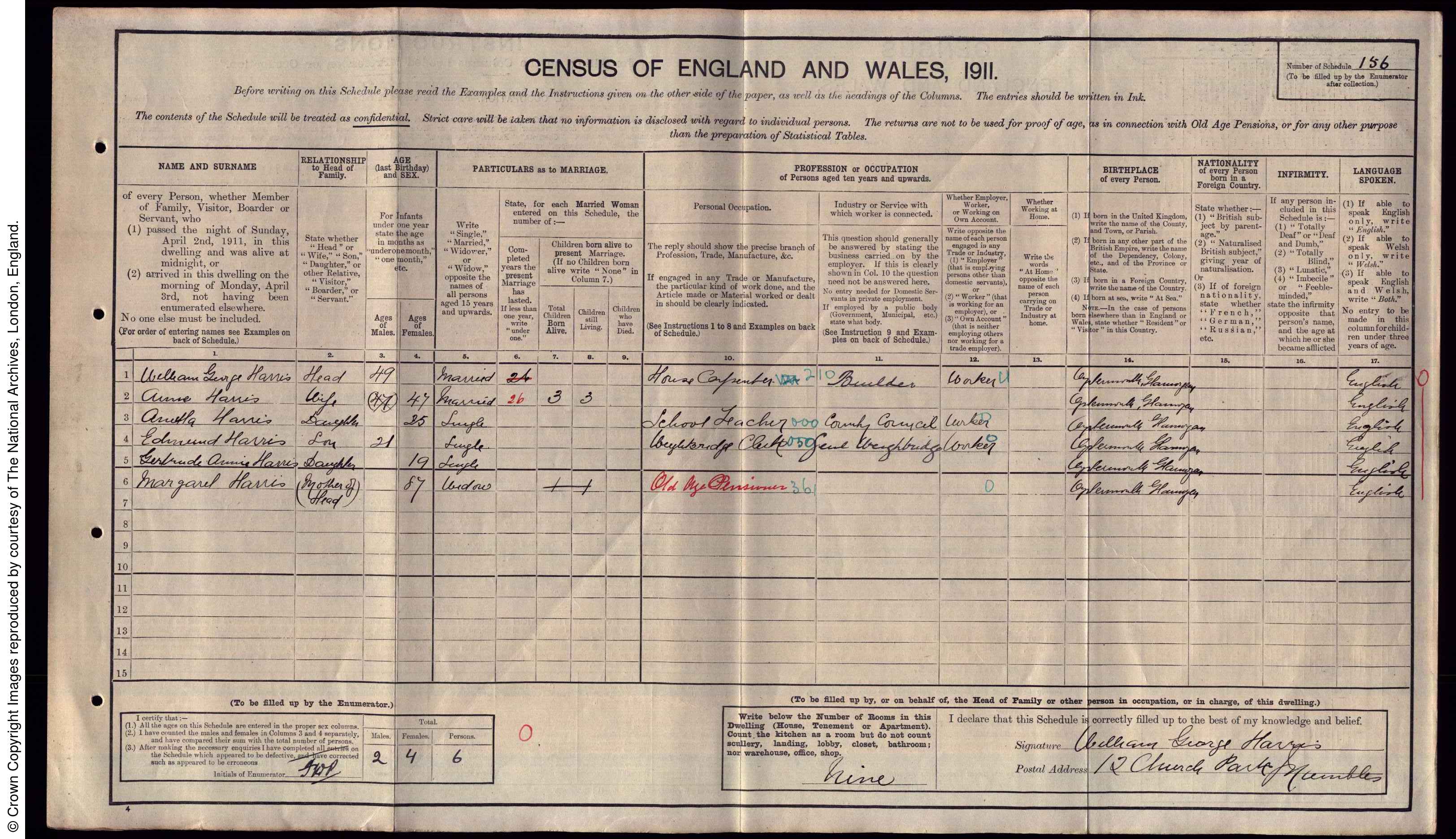 • Lived at: 12 Church Park, 1911, Oystermouth, Glamorgan, Wales.
