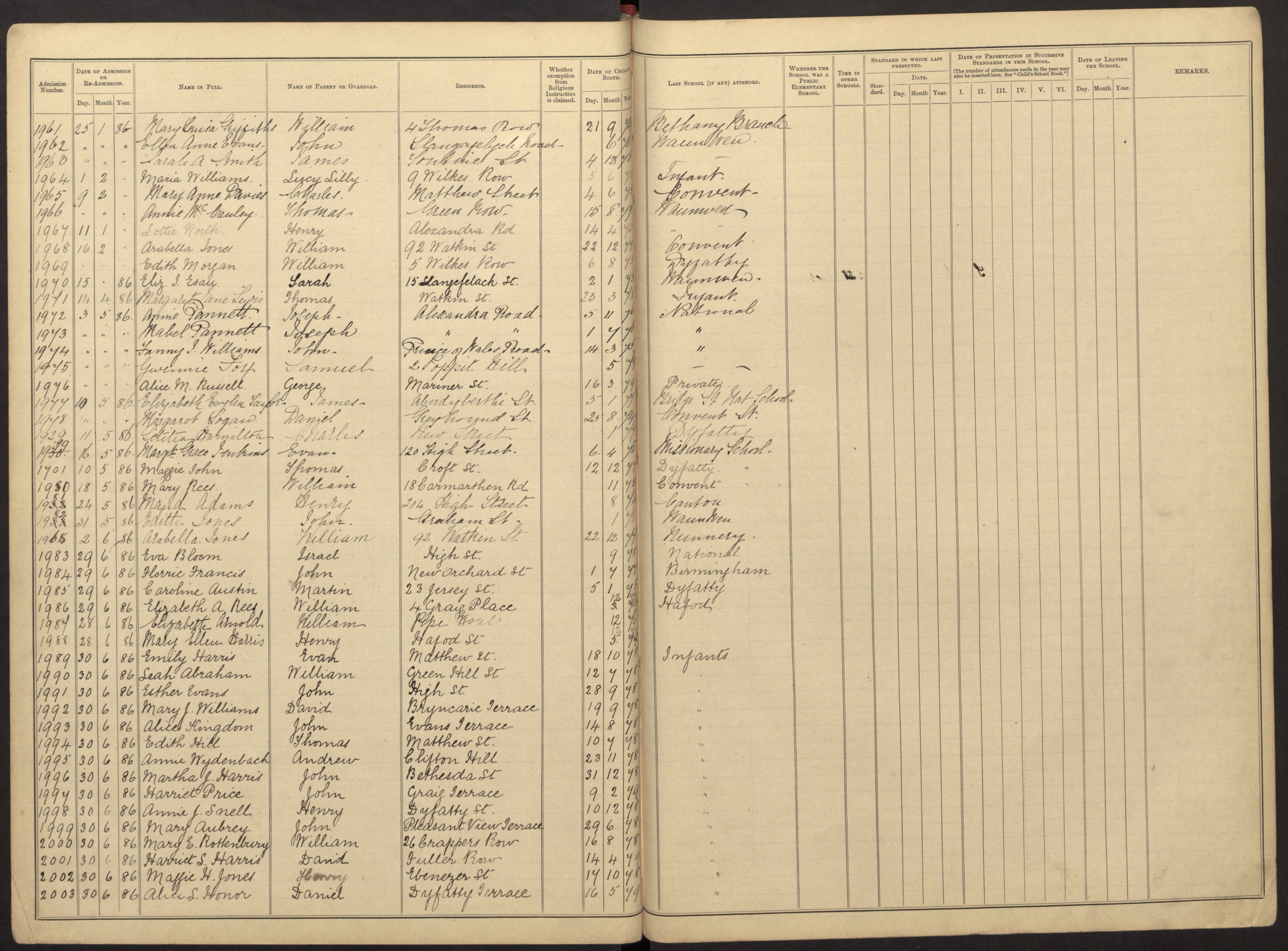 • School: Swansea, 1884. |