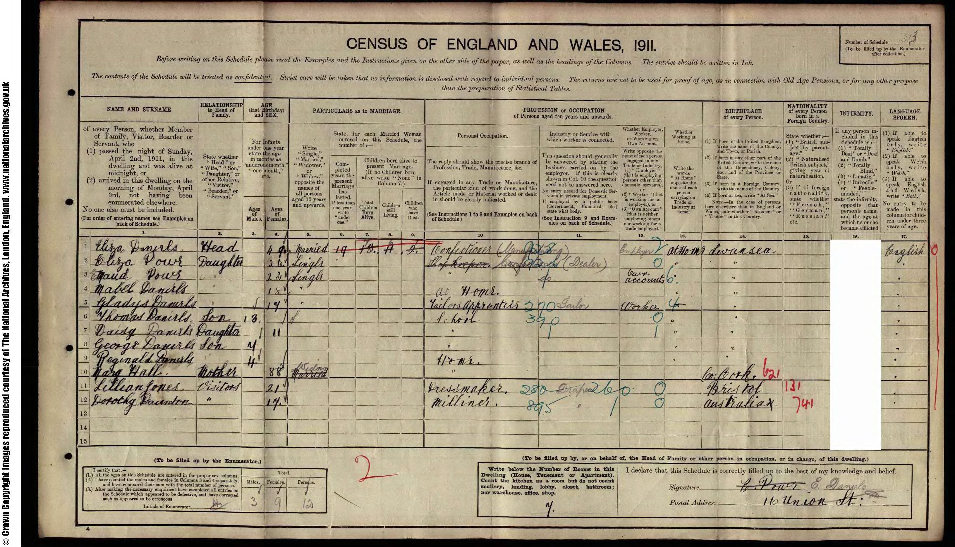 • Lived at: 16 Union Street, 1911, Swansea, Glamorgan, Wales.