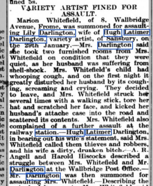 widow of Hugh Latimer Darlington, commercial traveller (chemical goods)