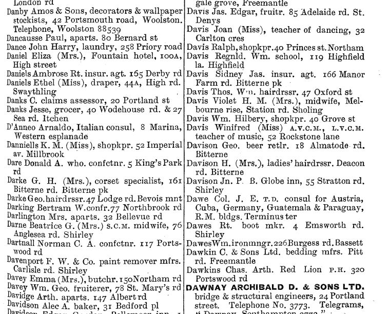 Lived at: 32 Bellvue Road, 1931-1936, Southampton, Hampshire, England. 13 Lived at: 3 Bellvue Terrace, 1939, Southampton, Hampshire, England. as per 1939 Register wrongly claims to be born in 1881 and widowed