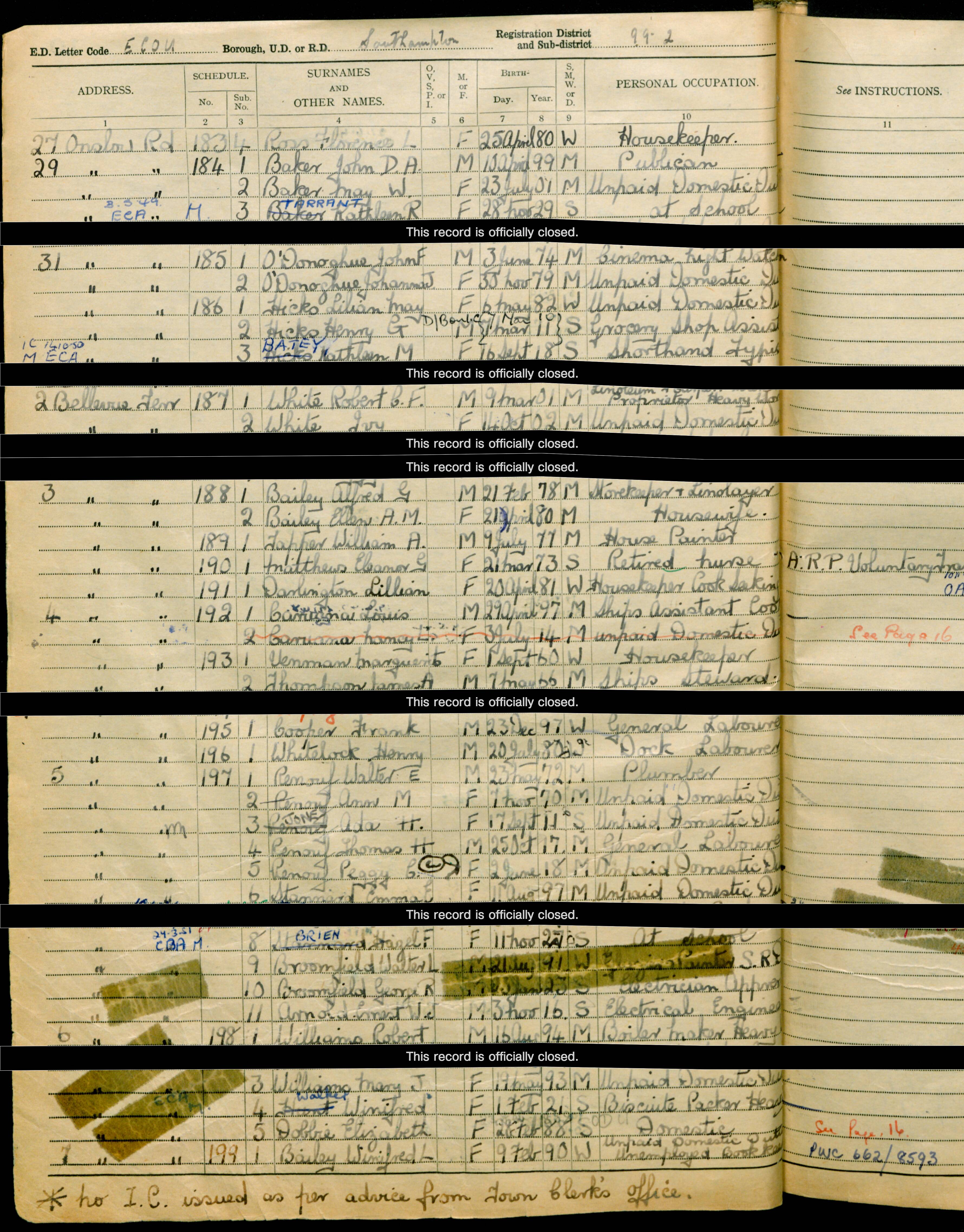 Occupation: Housekeeper Cook Seeking (work?), 1939, Southampton, Hampshire, England.