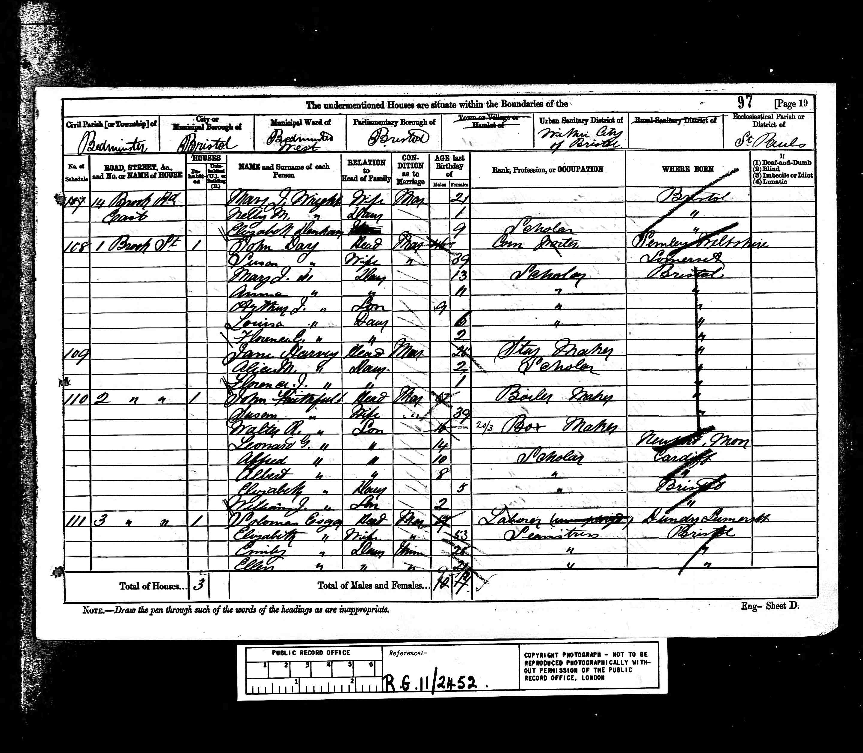 Lived at: 1 Brook Street, 1881, Bedminster, Somerset, England. 10
