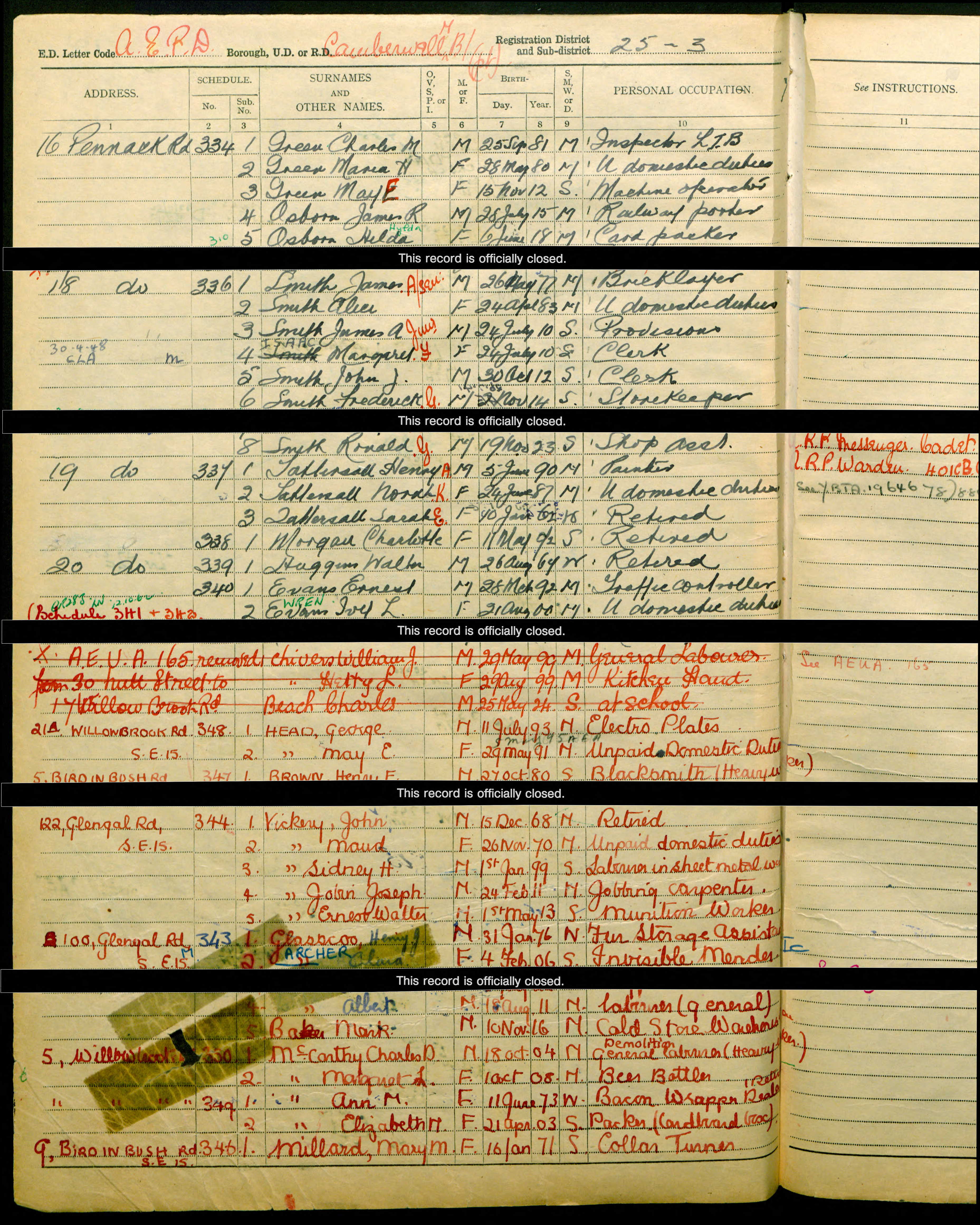 • Lived at: 16 Pennack Rd, 1939, Camberwell, Surrey, England.