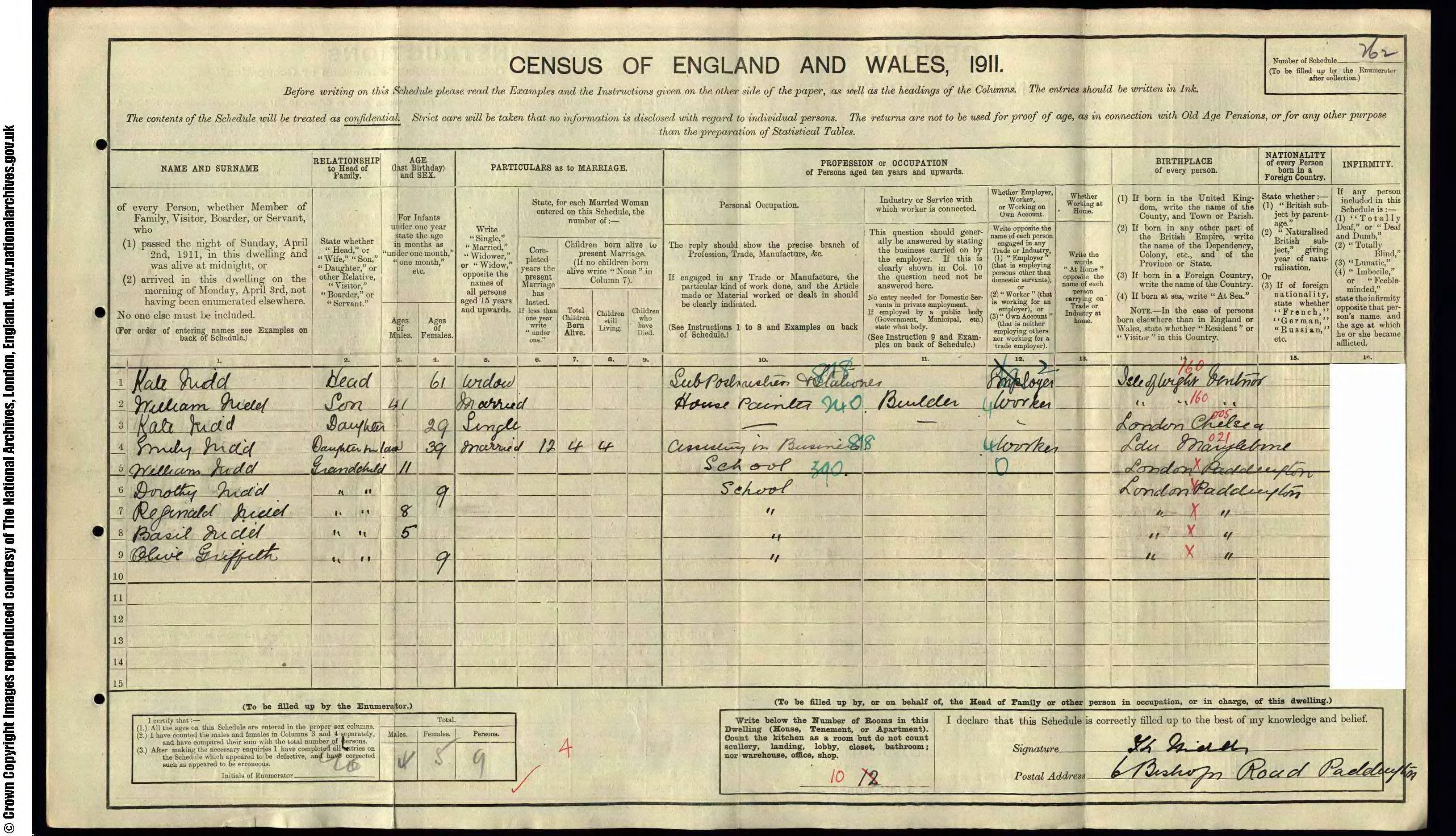 • Lived at: 6 Bishops Road, 1901-1911, Paddington, Middlesex, England. 8