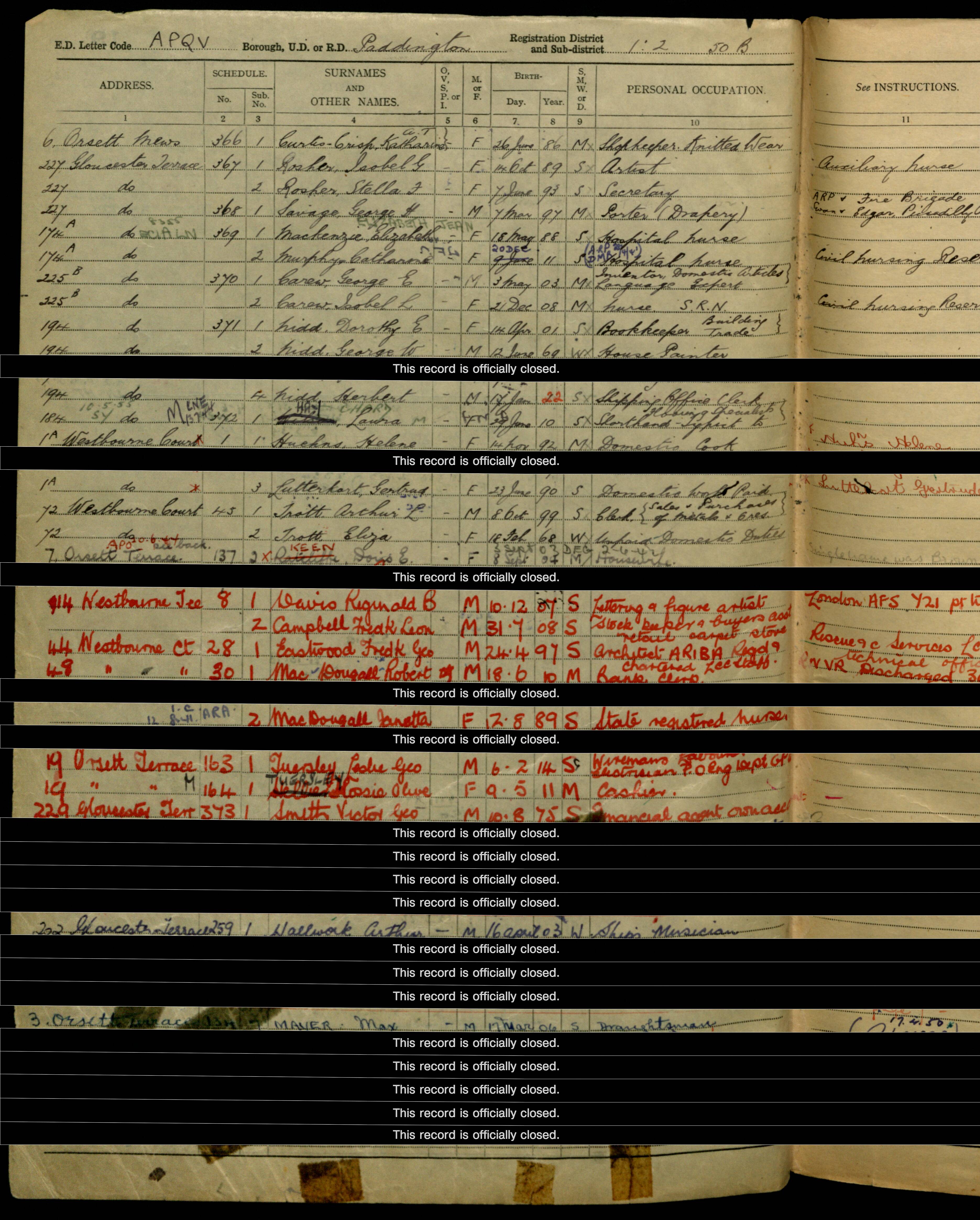 • Occupation: House Painter, 1911-1939, Paddington, Middlesex, England.