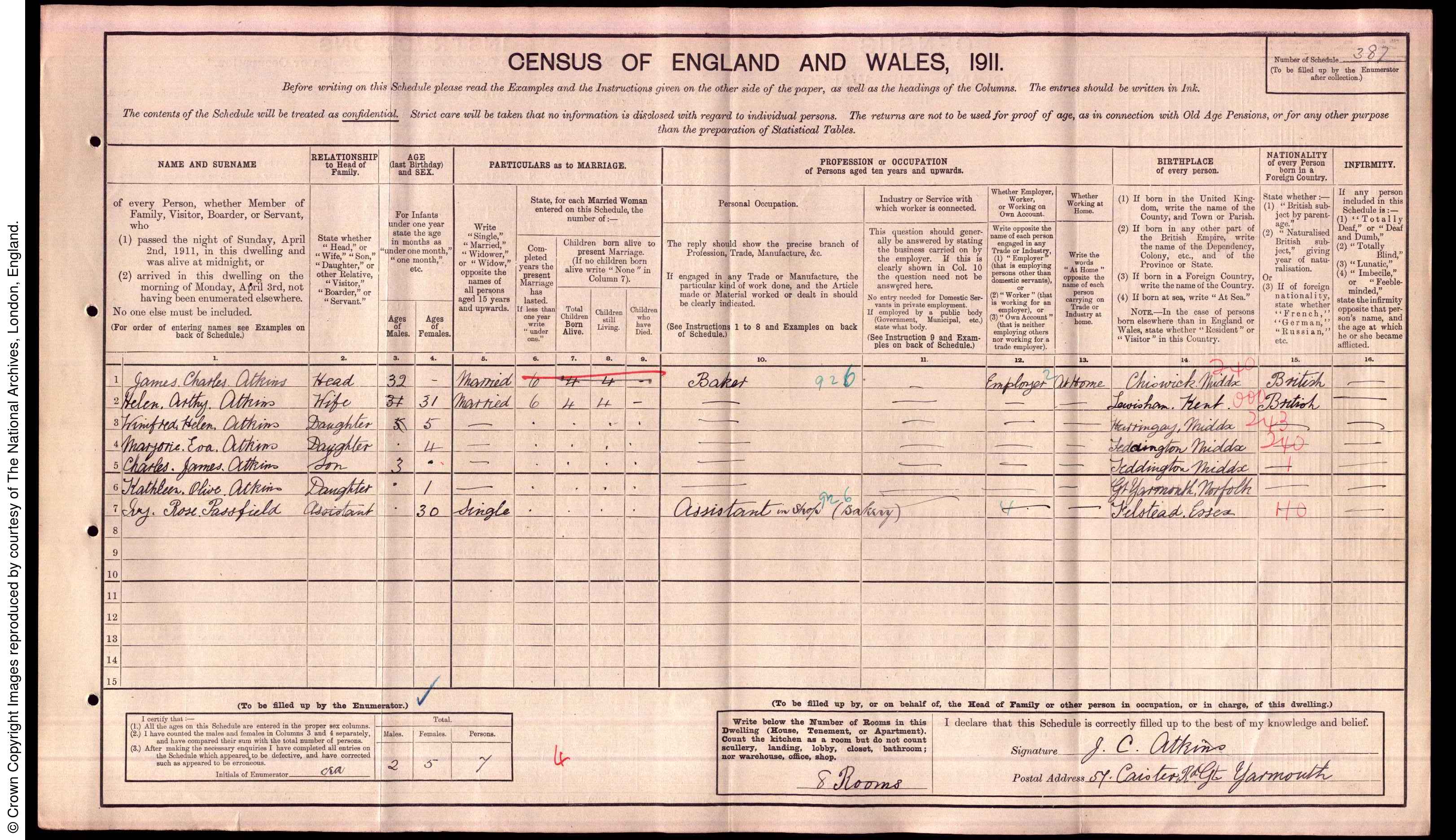 • Lived at: 57 Caister Road, 1911, Great Yarmouth, Norfolk, England.
