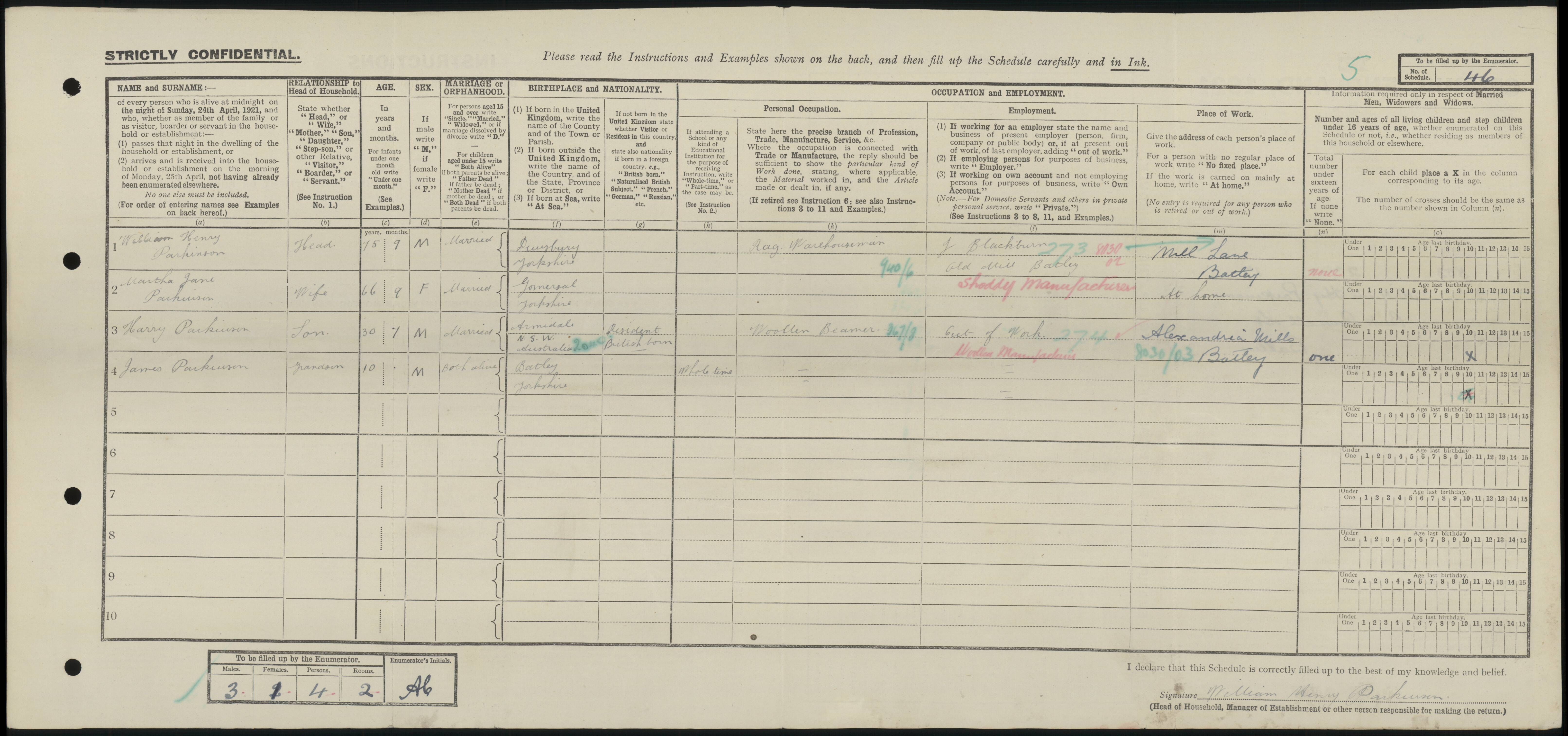 • Lived at: 4 Back Russell Street, 1921, Batley, Yorkshire, England. |
