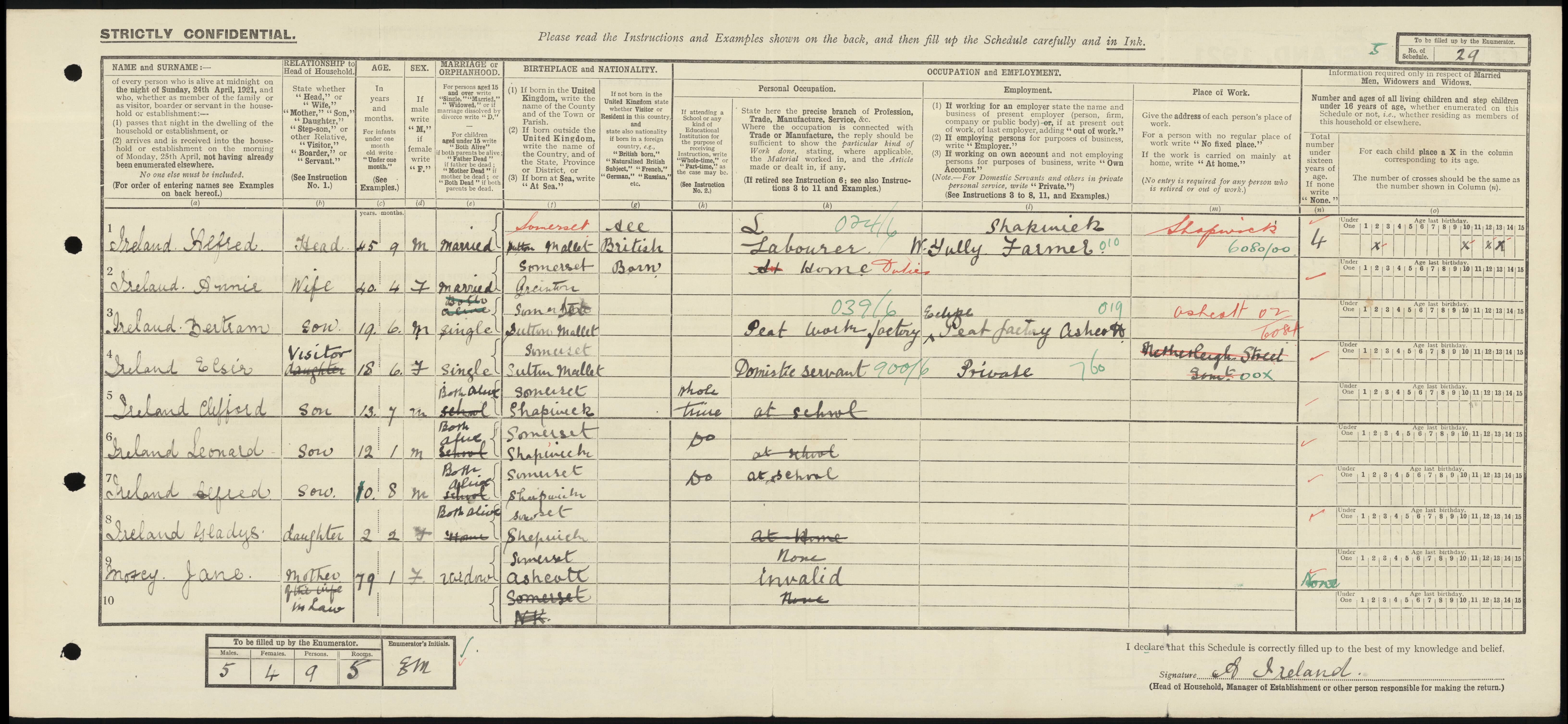 • Lived at: 6 Main Street, 1921, Shapwick, Somerset, England. |