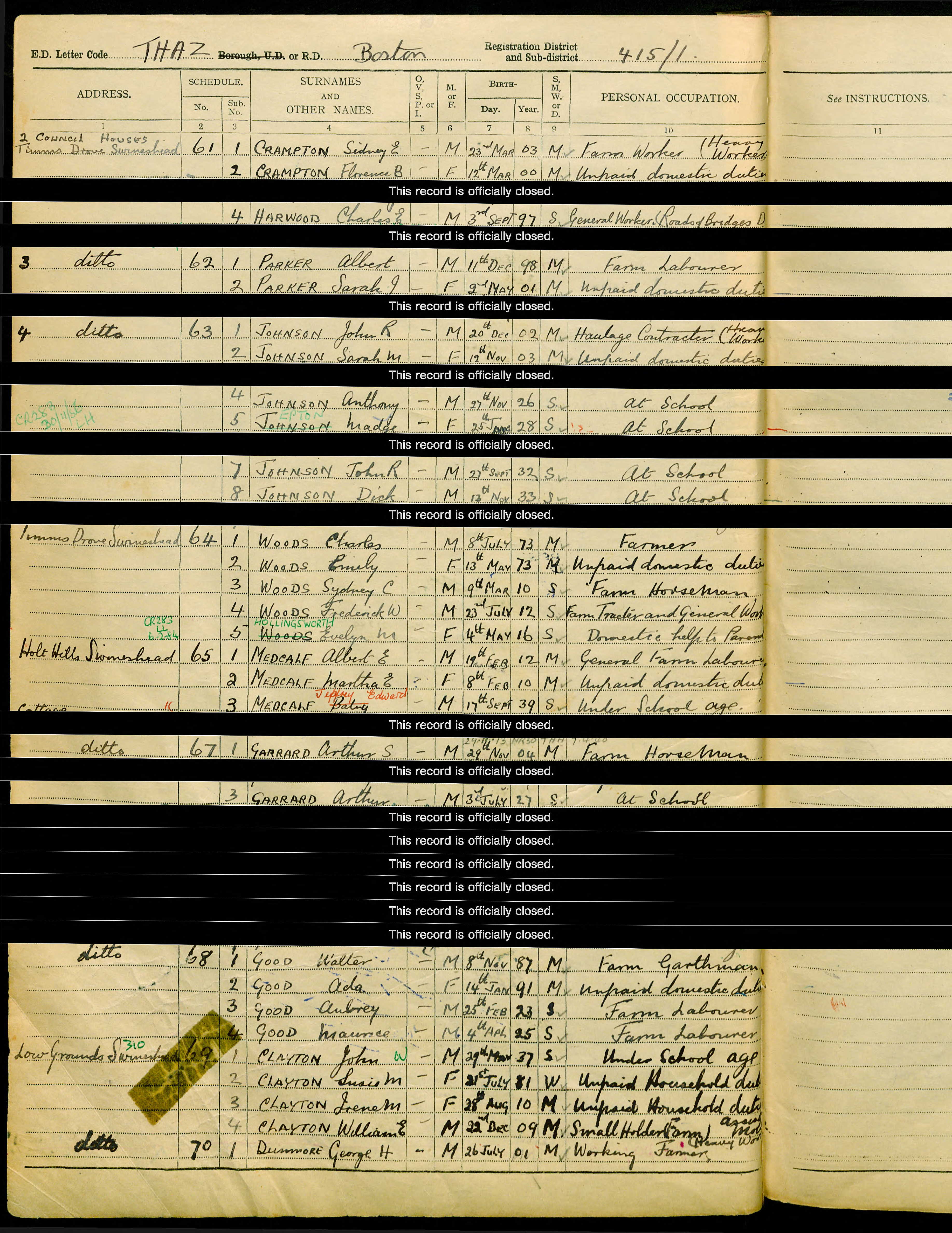 • Occupation: Labourer (bridges and roads, 1939, Boston, Lincolnshire, England. |