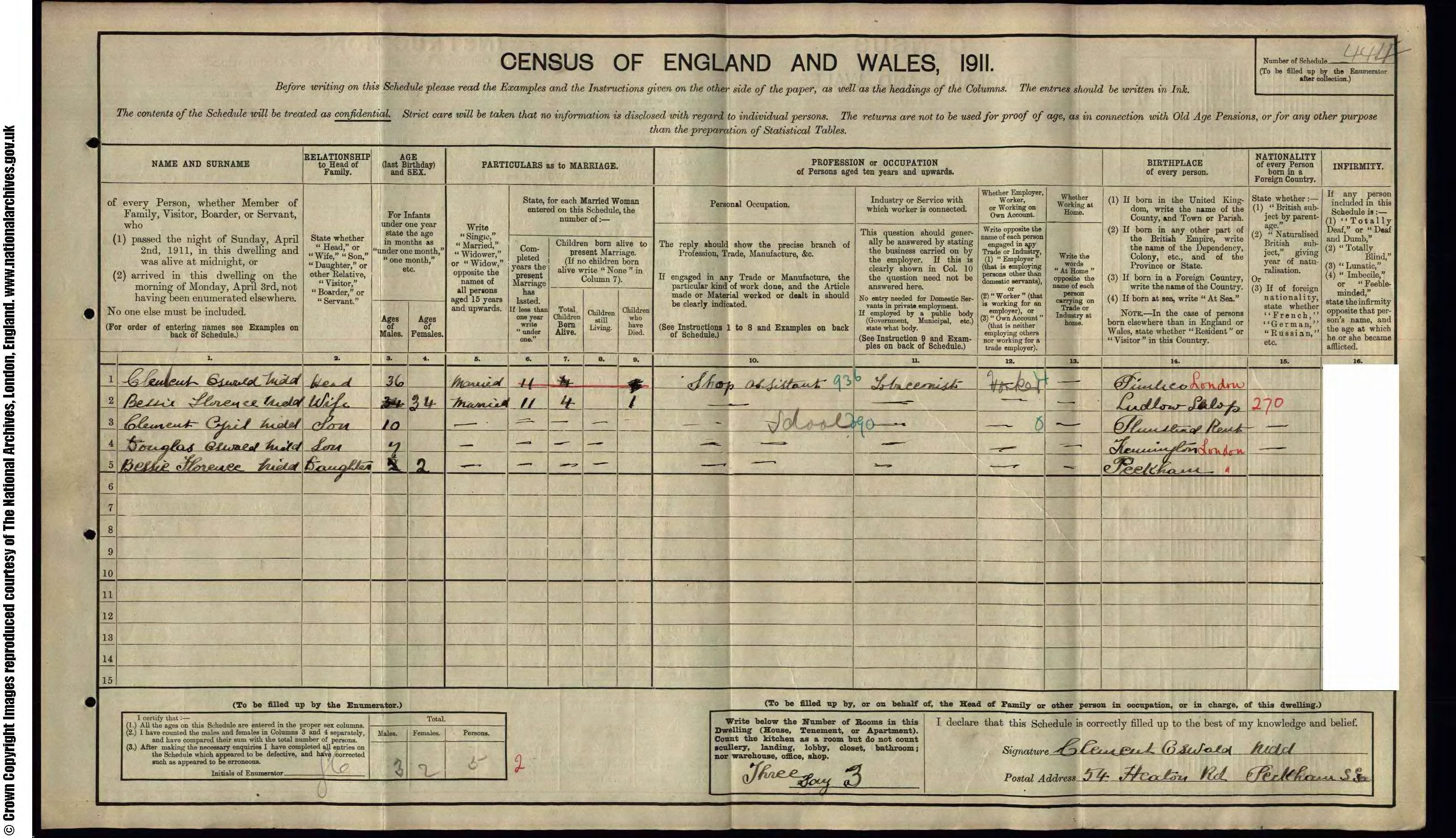 • Lived at: 54 Hexton Road, 1911, Peckham.