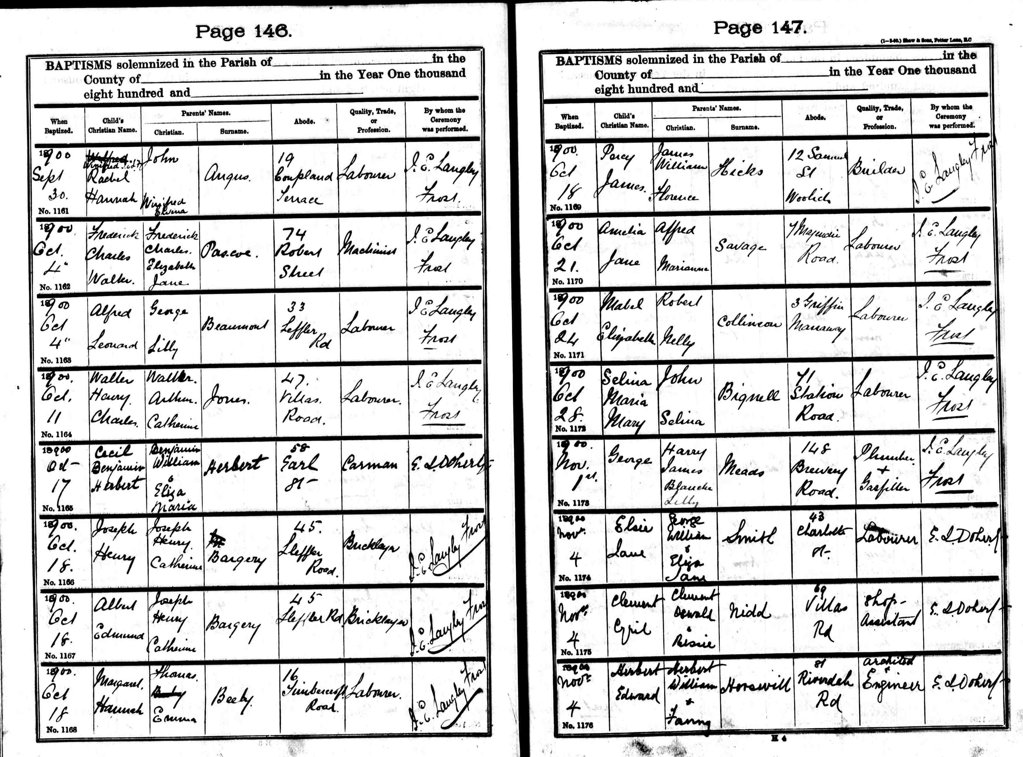 • Baptised: Plumstead, 4 Nov 1900, St. John the Baptist, Plumstead. • Lived at: 8 Plumstead Road, London, 1901.
