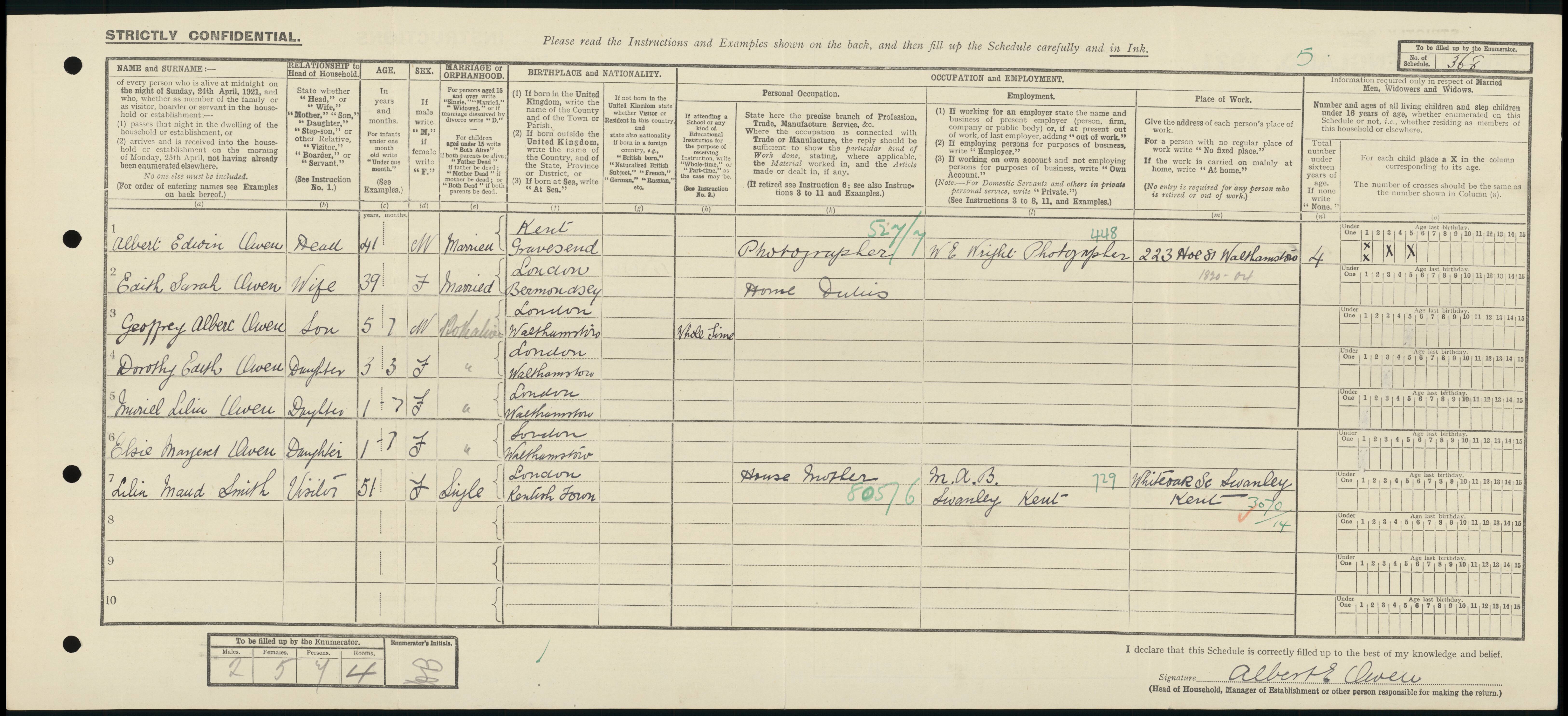 • Lived at: 223 Hoe Street, 1921, Walthamstow, Essex & London, England. |