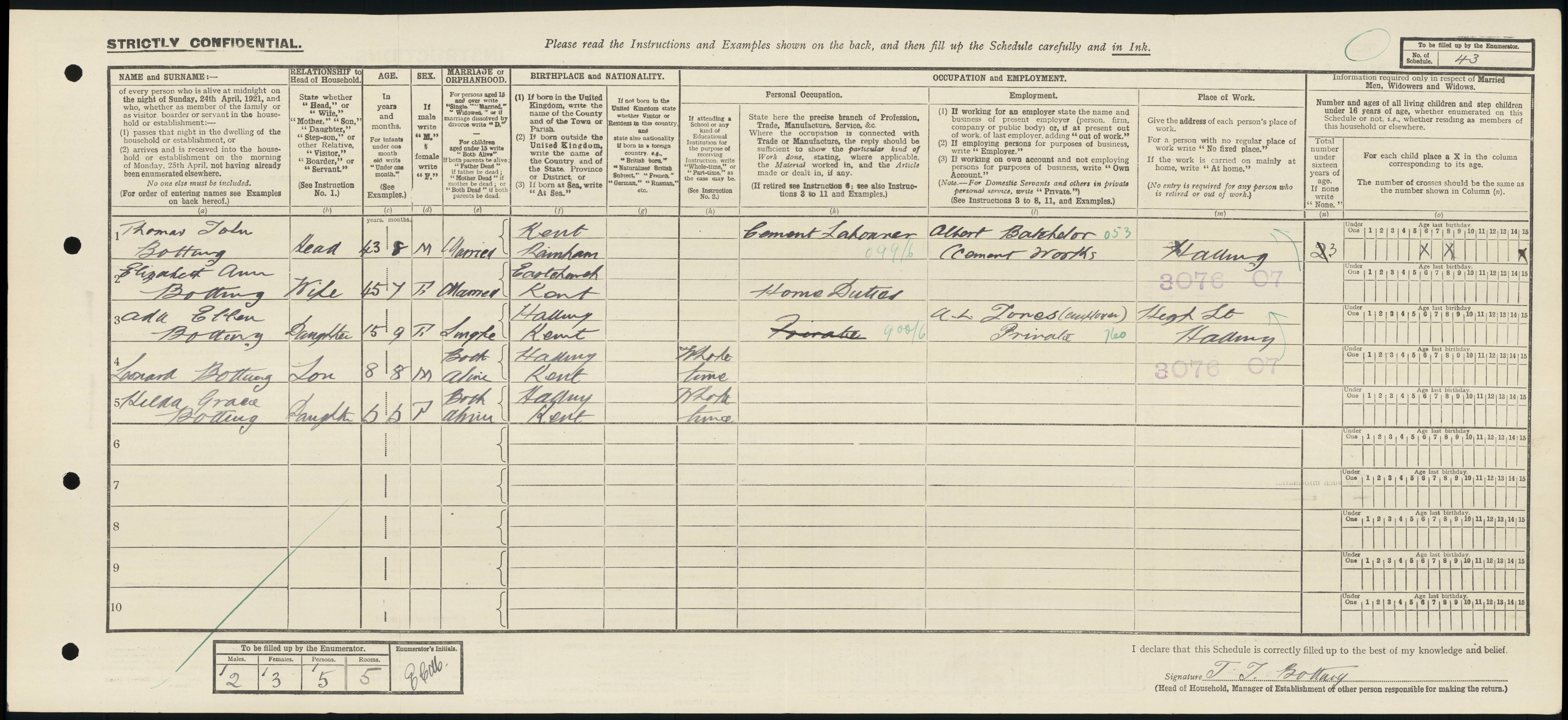 • Lived at: 2 Burton Place, 1921, Upper Halling, Halling, Kent, England. |