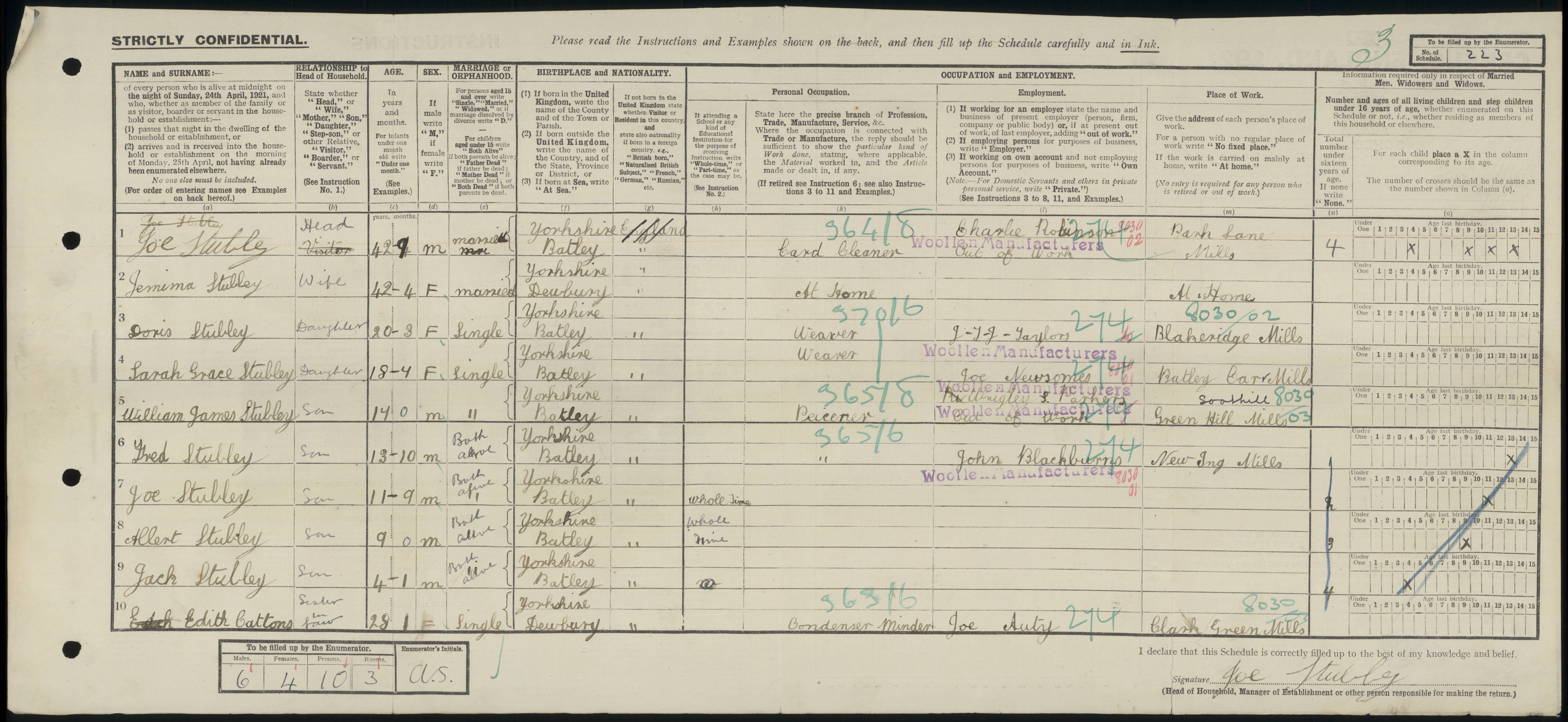 • Occupation: Weaver, 1921, Batley, Yorkshire (West Riding), England.