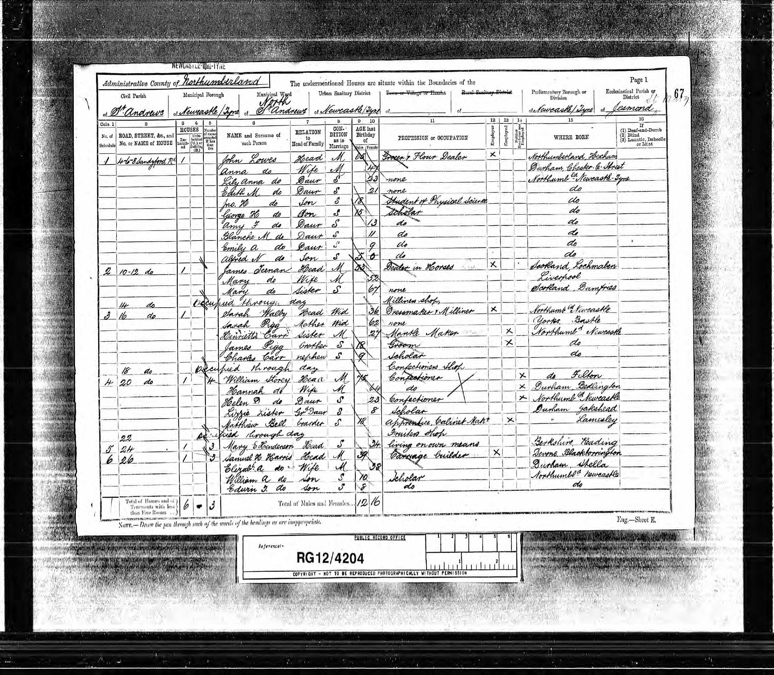 • Lived at: 16 Sandyford Road, 1891-1901, Newcastle, Northumberland, England. |