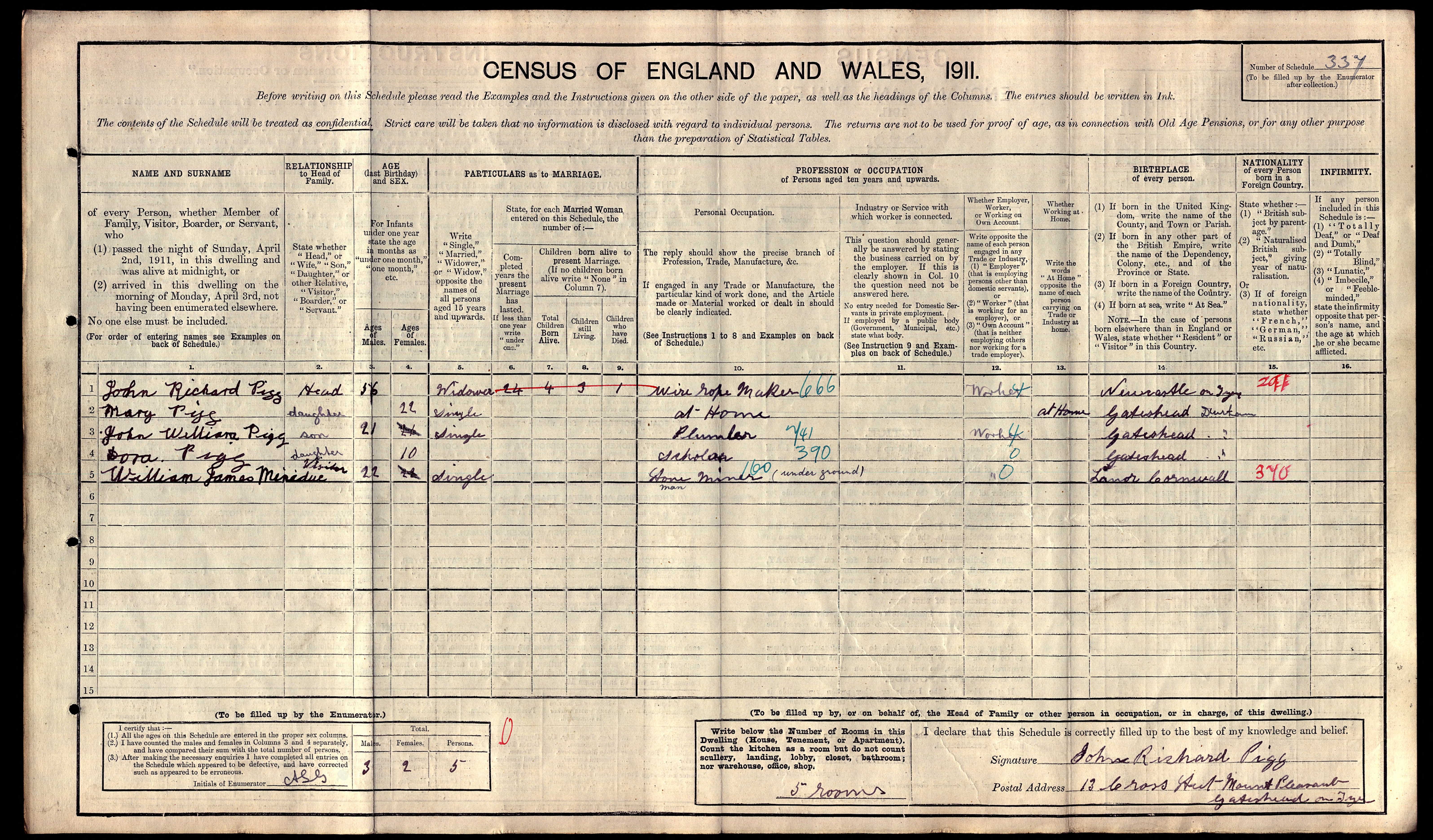 • Lived at: 13 Cross Street Mount Pleasant, 1911, Gateshead On Tyne. |