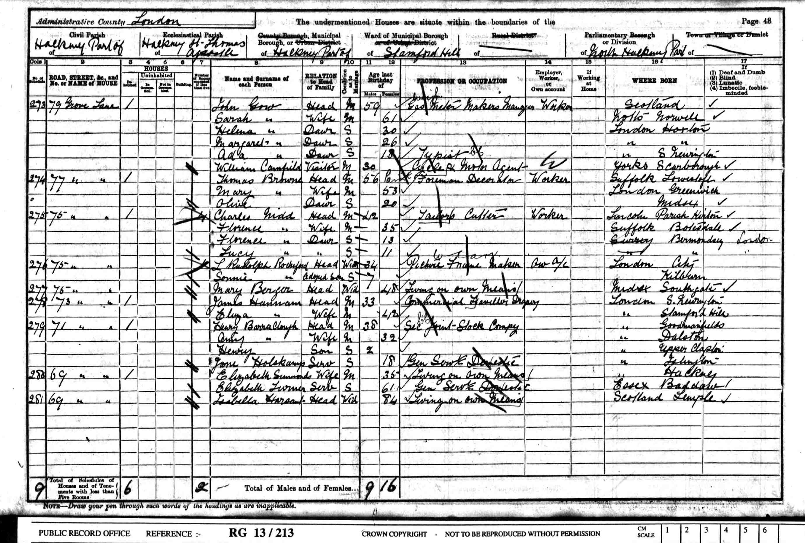 • Lived at: 75 Grove Lane, 1901, Hackney, London. 1