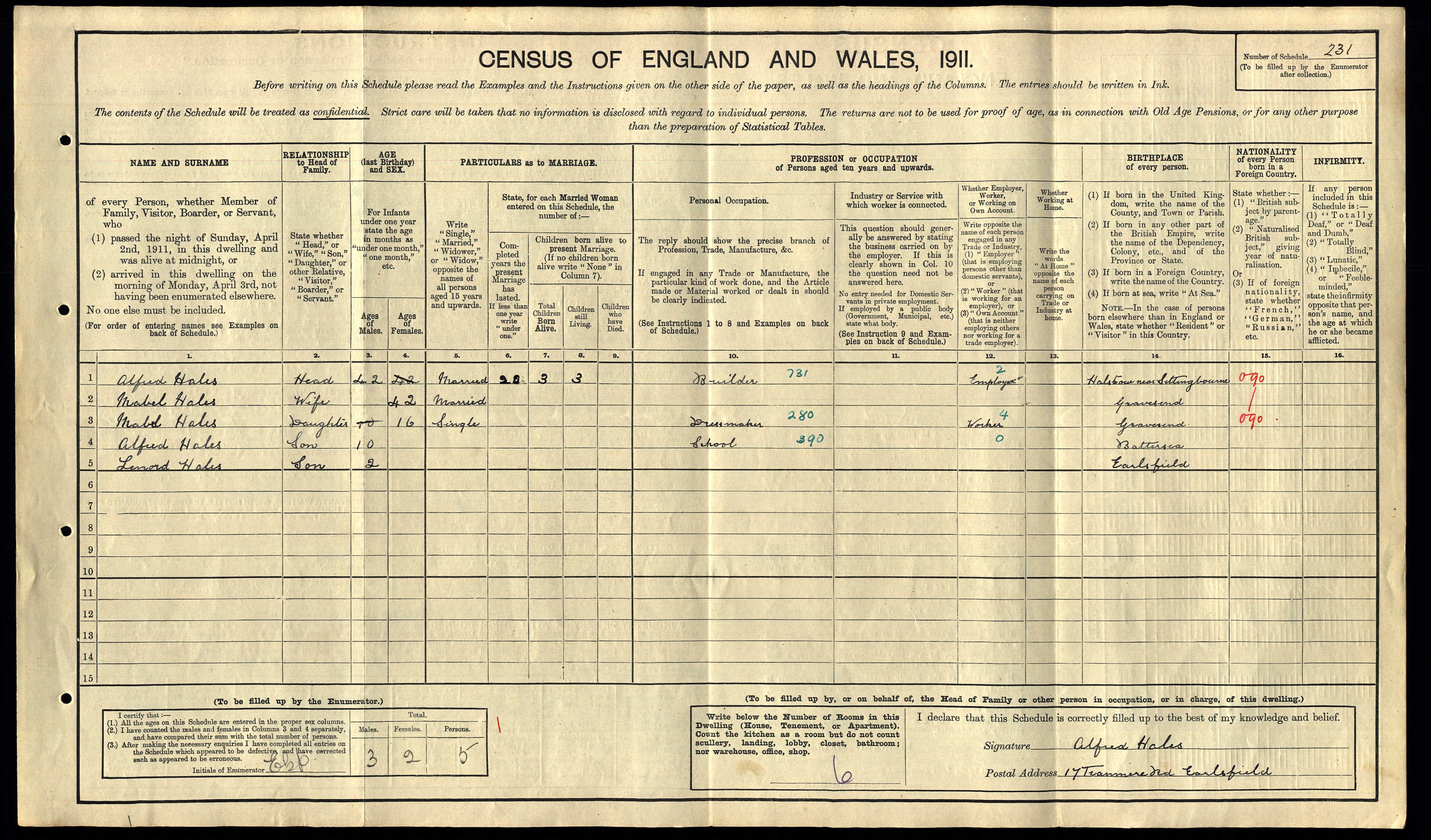 • Lived at: 17 Tranmere Road, 1911, Earlsfield, Wandsworth, Surrey.