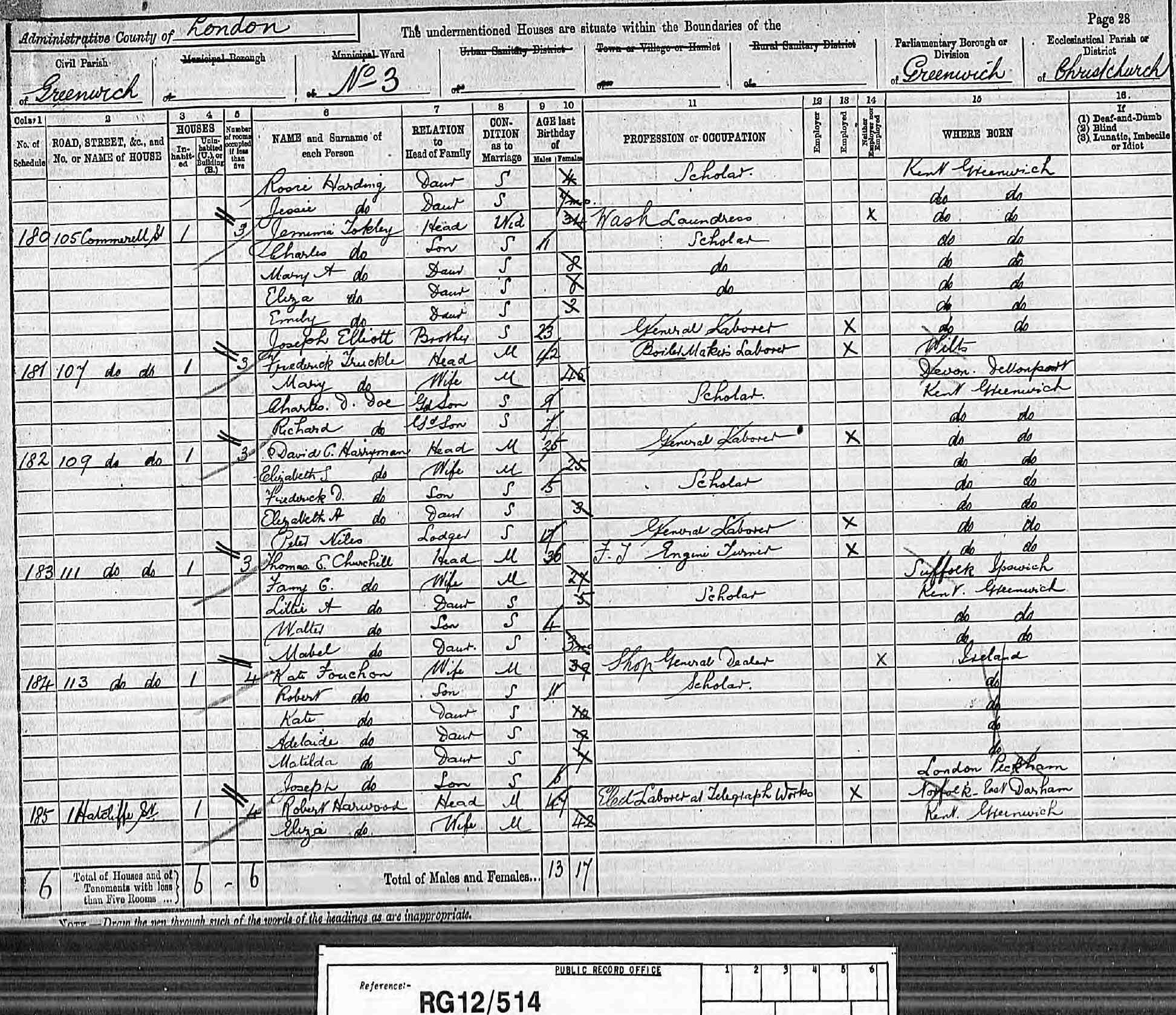 • Lived at: 109 Commerell Street, 1891, Greenwich, Kent, England. 2 4