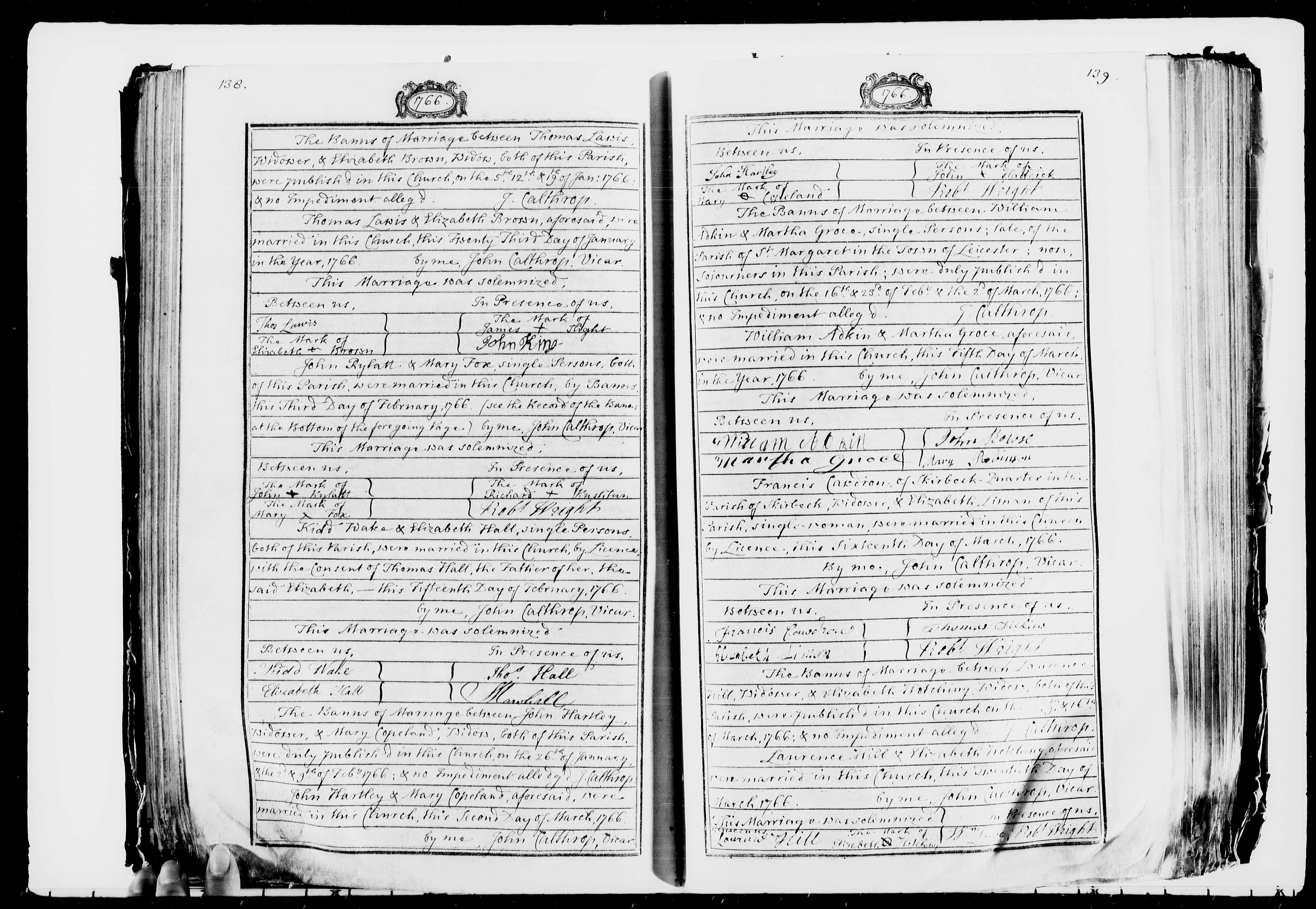 • Marriage Image: Parish Record, 1766, Boston, Lincolnshire, England.