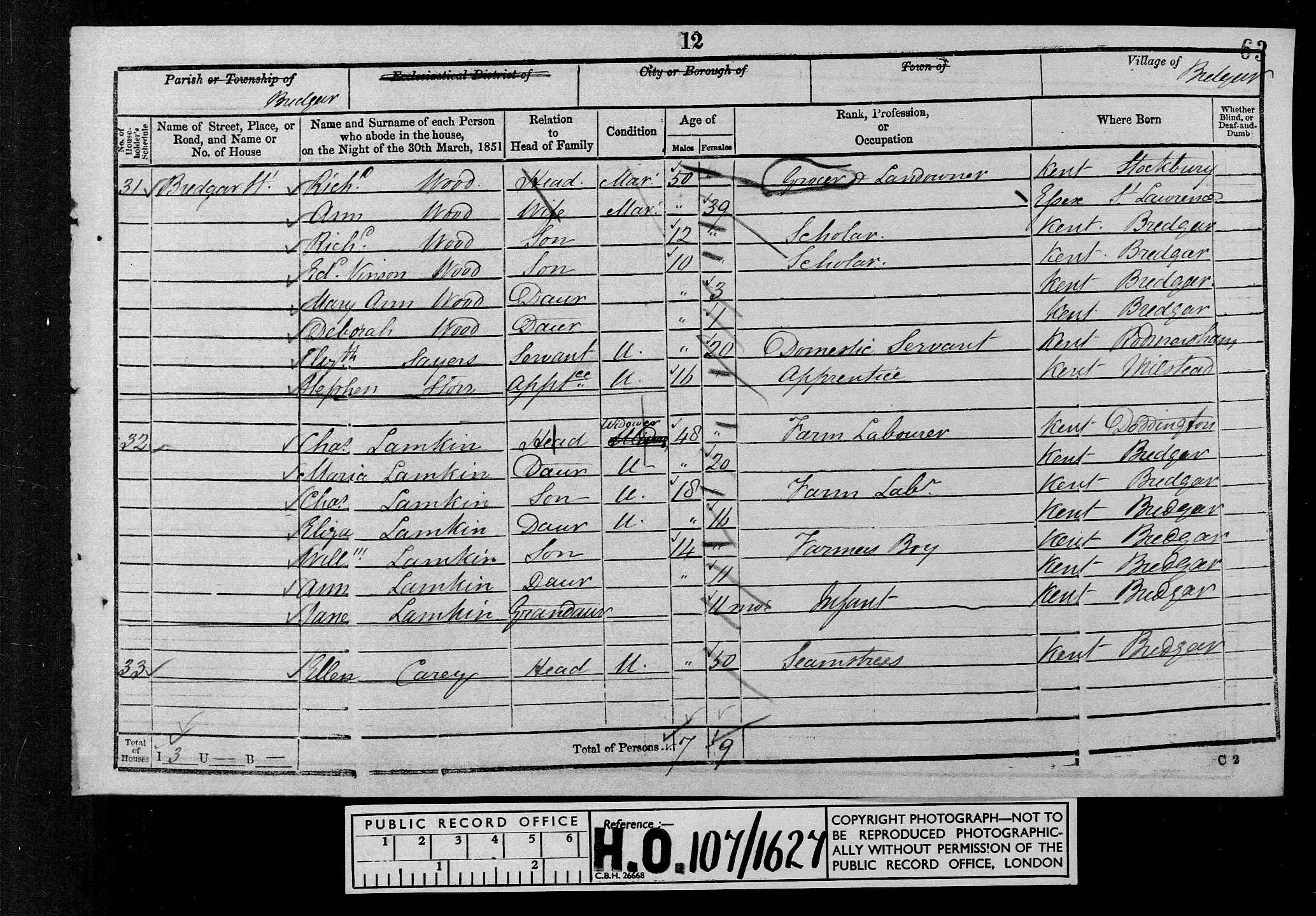 • Lived at: Farm House, Bredgar Street, 1861, Bredgar, Milton, Kent, England.