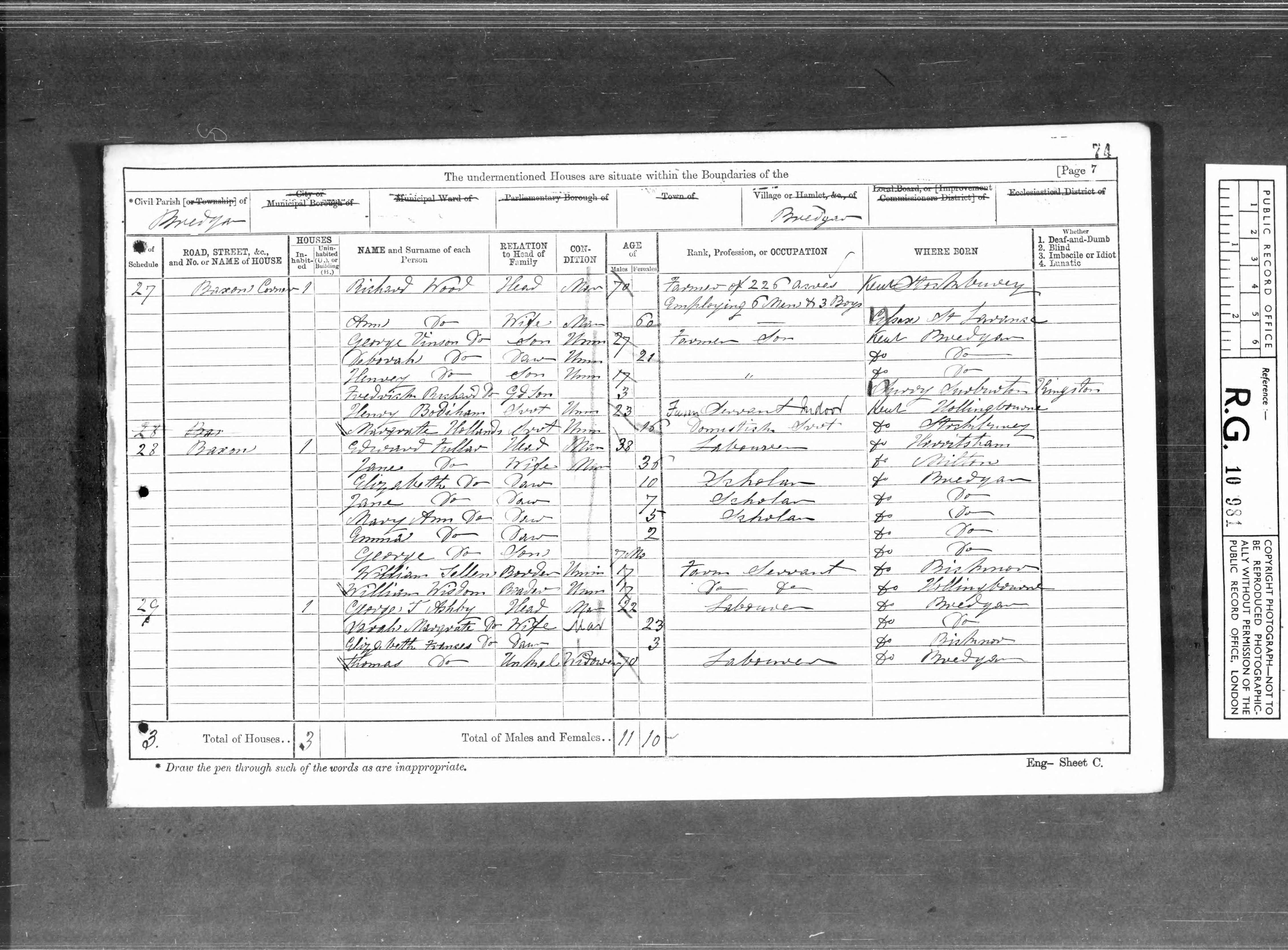 • Lived at: Baxon Corner, 1871, Bredgar, Milton, Kent, England. |