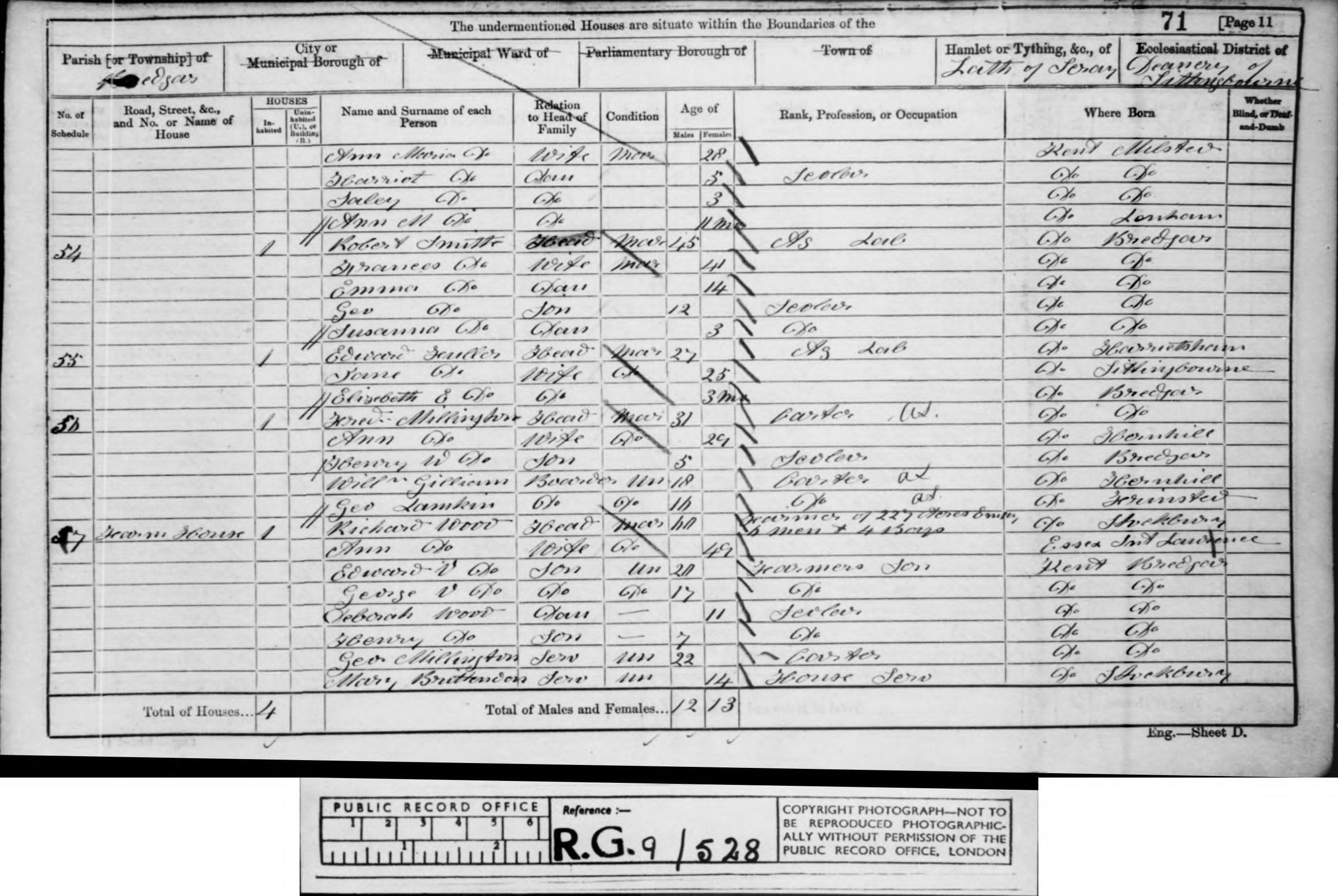 • Lived at: Baxon Corner, 1871, Bredgar, Milton, Kent, England.