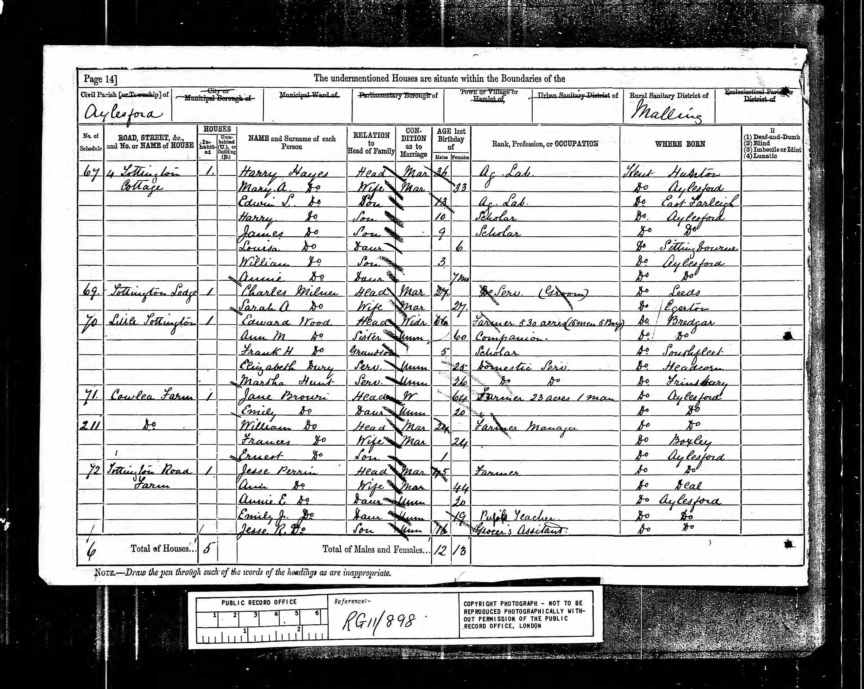 • Lived at: Little Pottington, 1881, Aylesford, Aylesford, Kent, England.