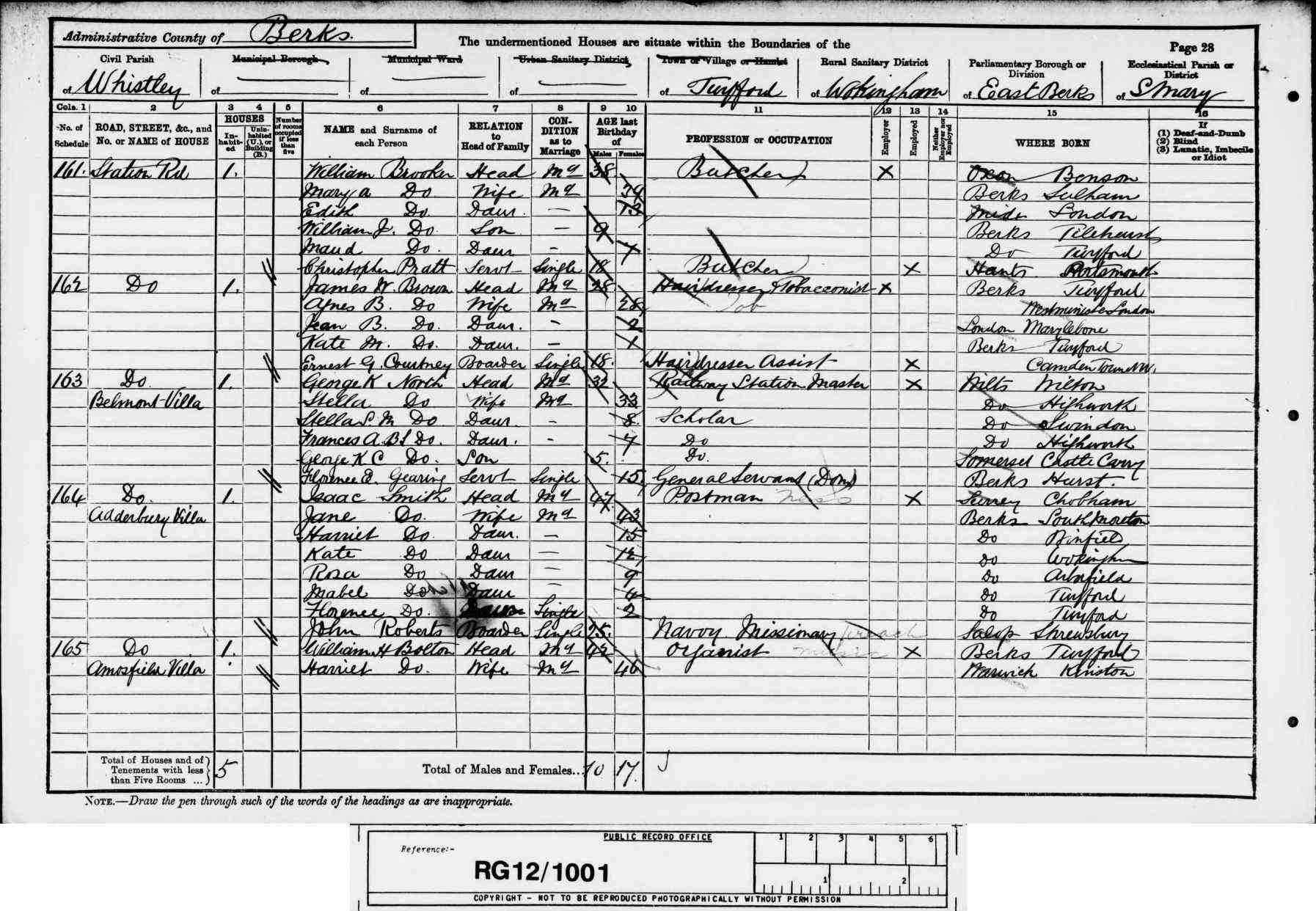 • Lived at: Station Road, 1891, Whistley, Wokingham.