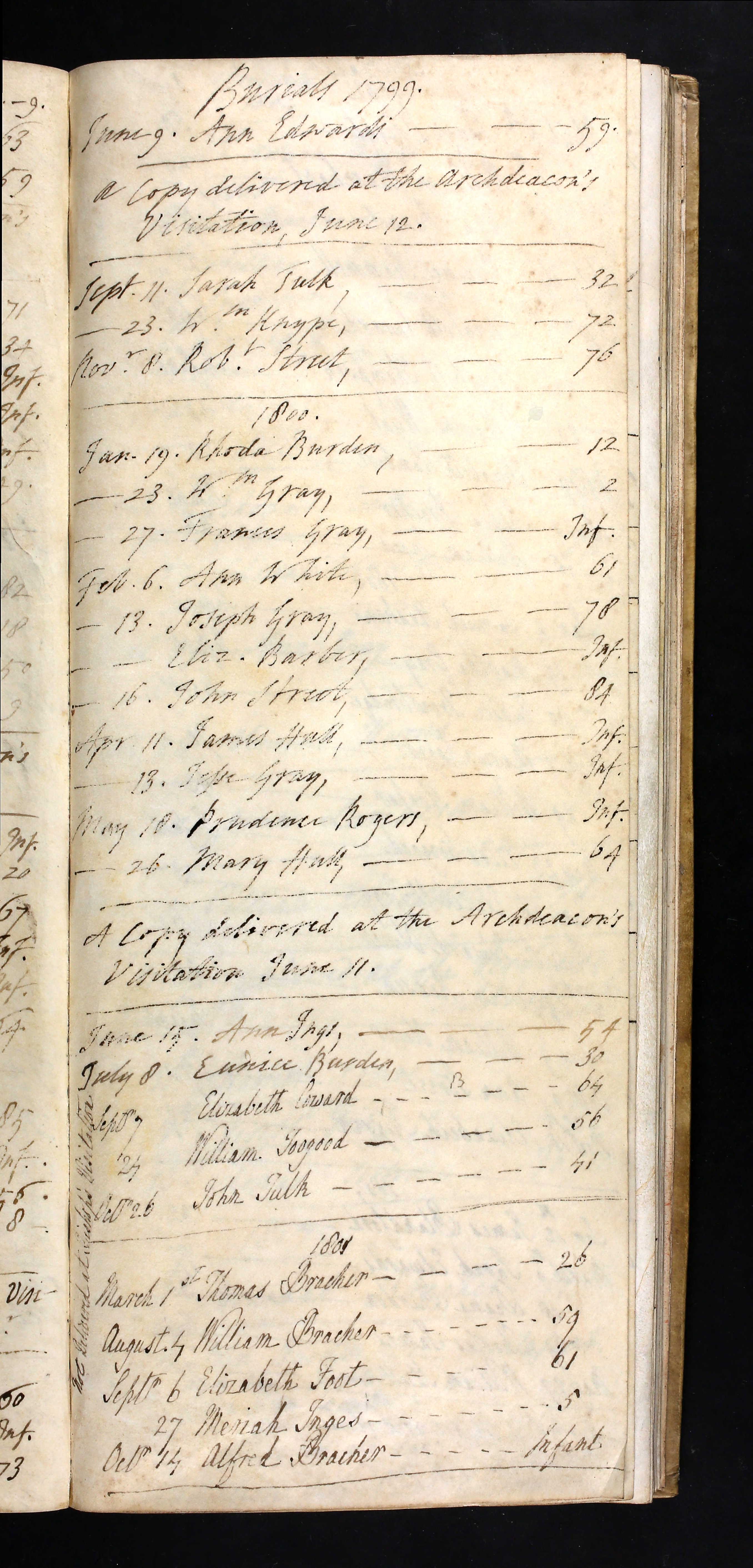 • Burial Image: Parish Record, 1800, Semley Church, Semley, Wiltshire, England. William married Bathsheba Smith, daughter of John Smith and Rebbeca Powell, on 28 Nov 1768 in Semley Church, Semley, Wiltshire, England.1 (Bathsheba Smith was born circa 1746 in England, died in Jun 1832 and was buried on 17 Jun 1832 in Semley Church, Semley, Wiltshire, England 3.) |