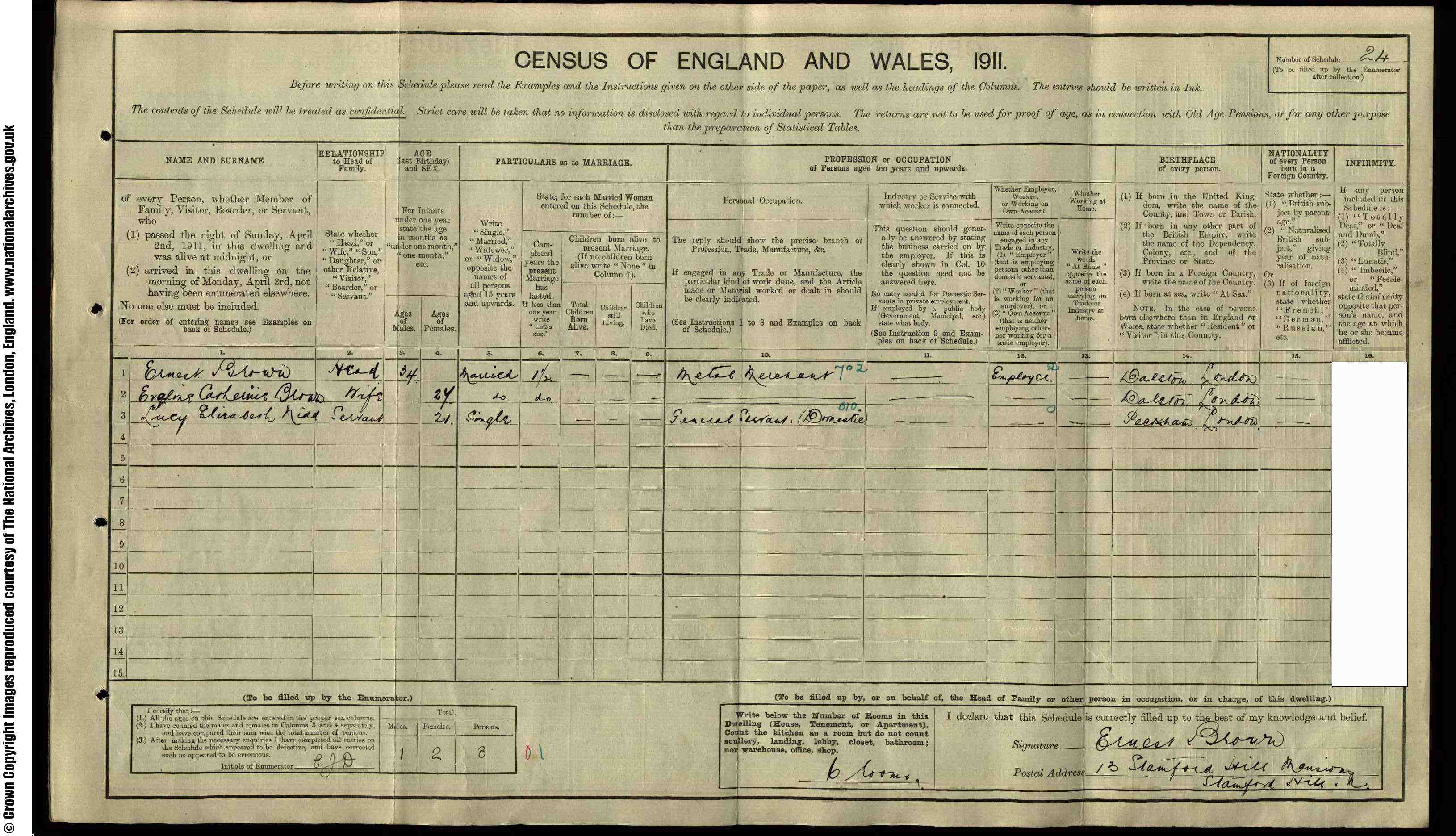 • Lived at: 75 Grove Lane, 1901, Hackney, London. 1 • Lived at: 13 Stamford Hill Mansions, 1911, Stamford Hill.