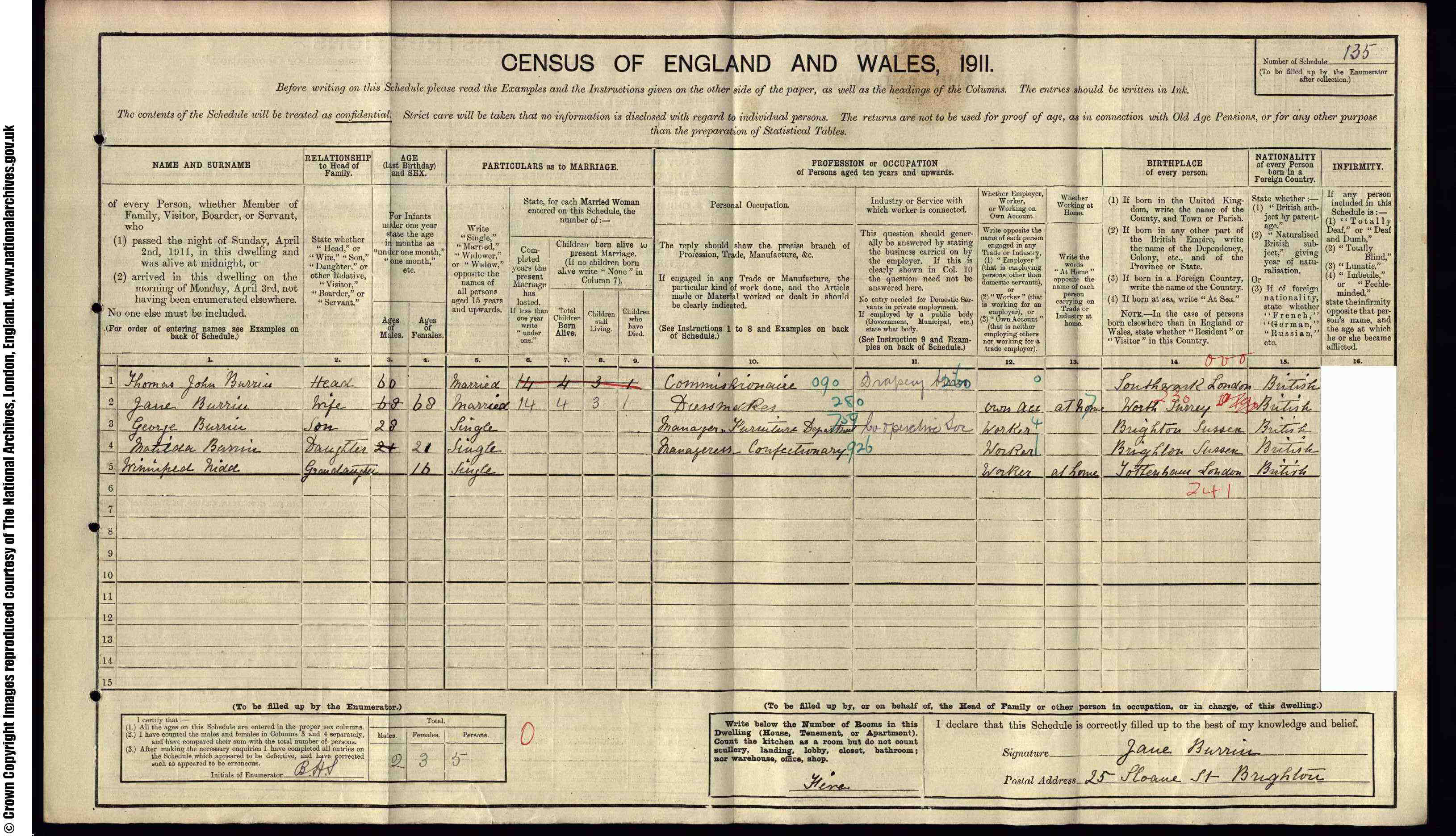 • Lived at: 25 Sloane Street, 1911, Brighton, Sussex, England. with Grandparents |