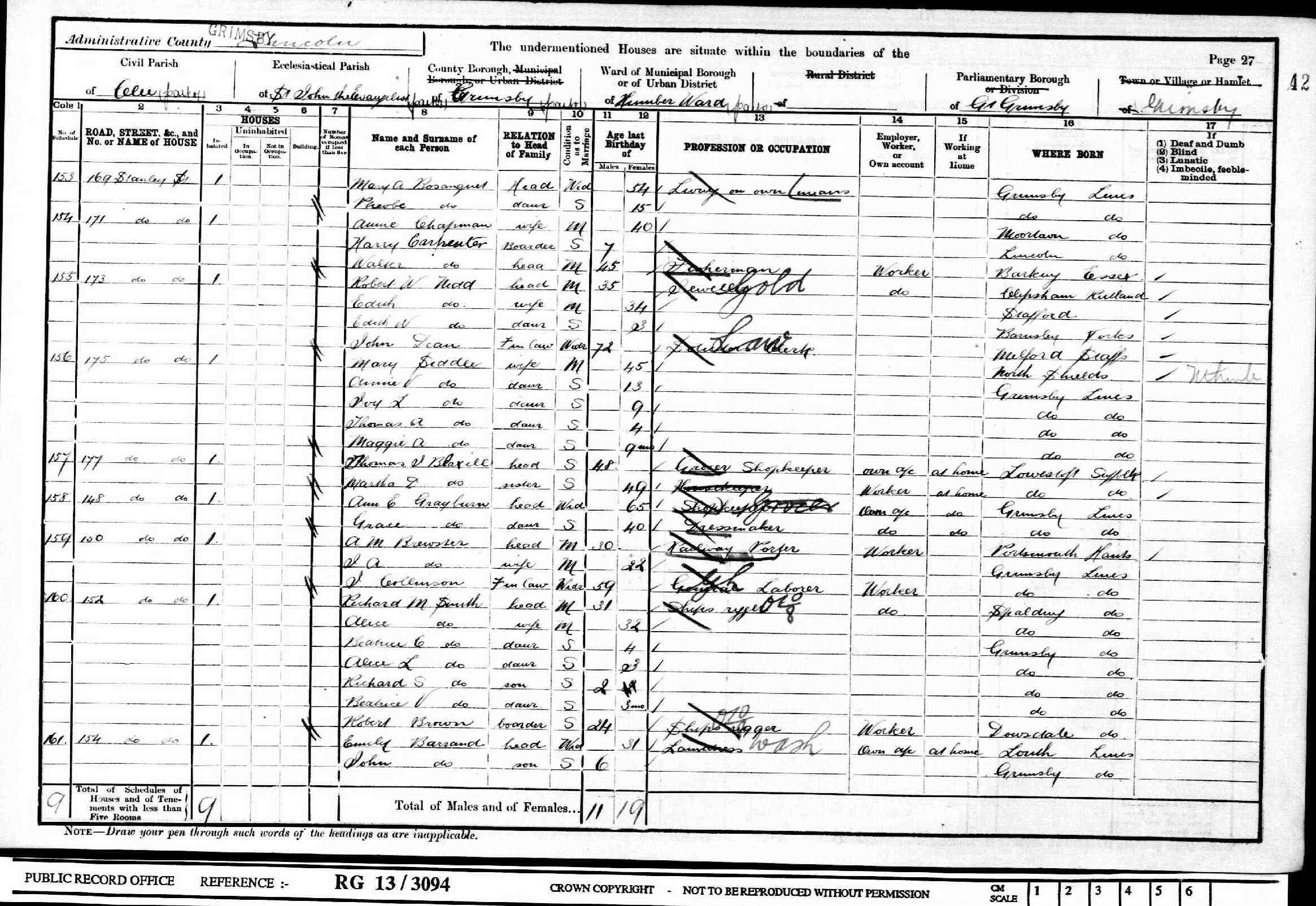 • Lived at: 173 Stanley Street, 1901, Grimsby, Lincolnshire, England. 7 • Occupation: Jeweller, 1901, Grimsby, Lincolnshire, England. 8