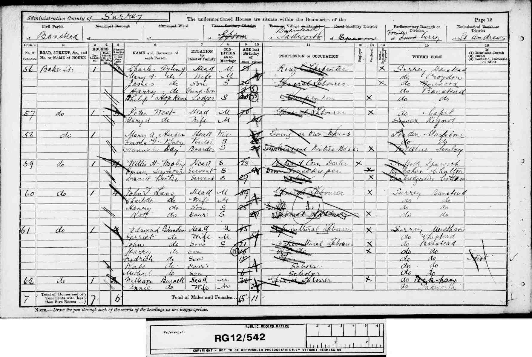 (1881 English and Welsh Census(London, TNA/Ancestry.co.uk, 1982) , Web site showing copies of original enumerator schedules) ID: CEN 1881, CEN 1881 rg11 32 page 62. Repository: Not Given. Cit. Date: 17 Nov 2005. Cit. ID: CEN 1881 rg11 32 page 62. Surety: 2.