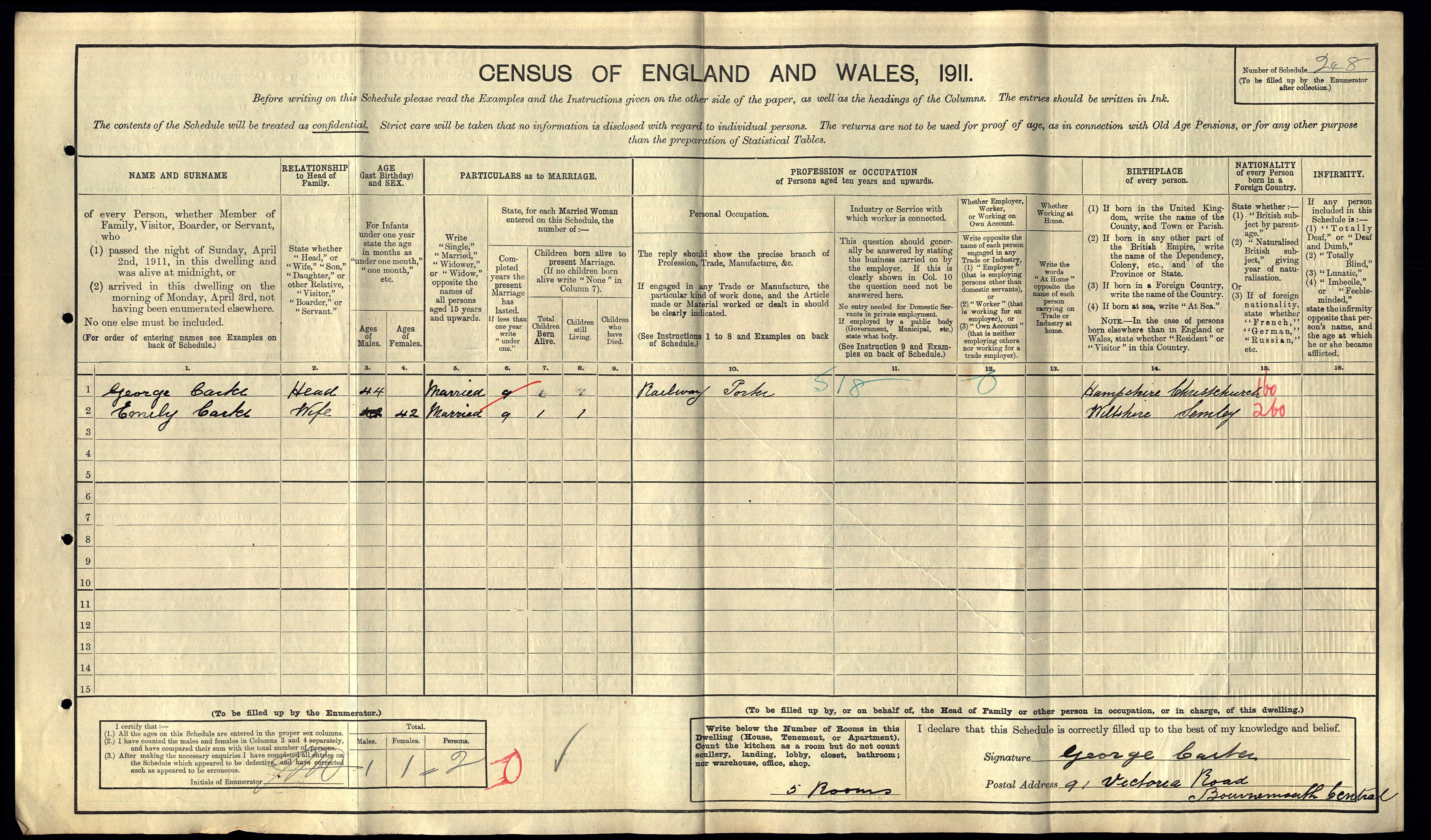 • Lived at: 91 victoria Street, 1911, Bournemouth, Dorset, England.