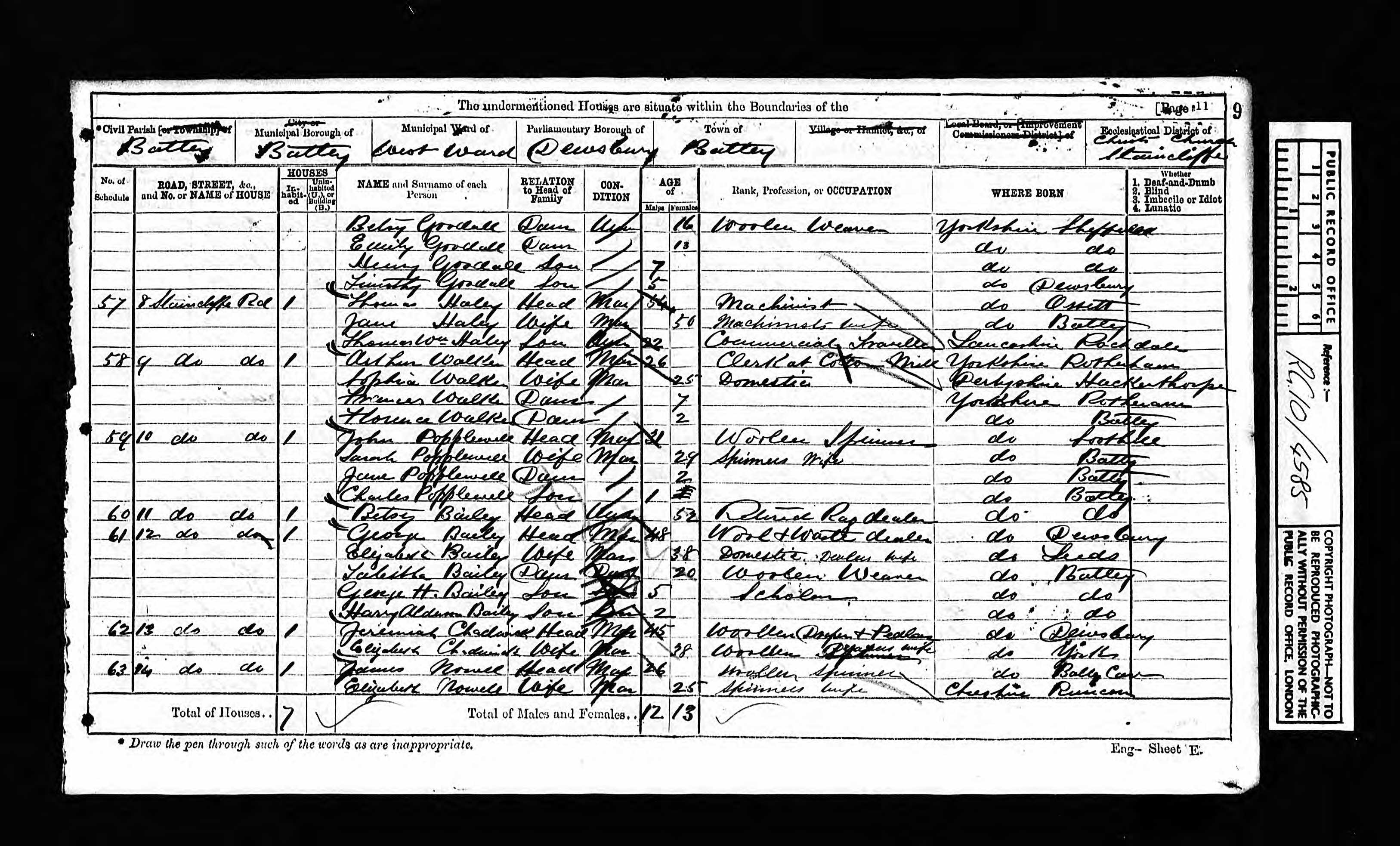 • Lived at: Staincliffe Road, 1871, Batley, Yorkshire, England.