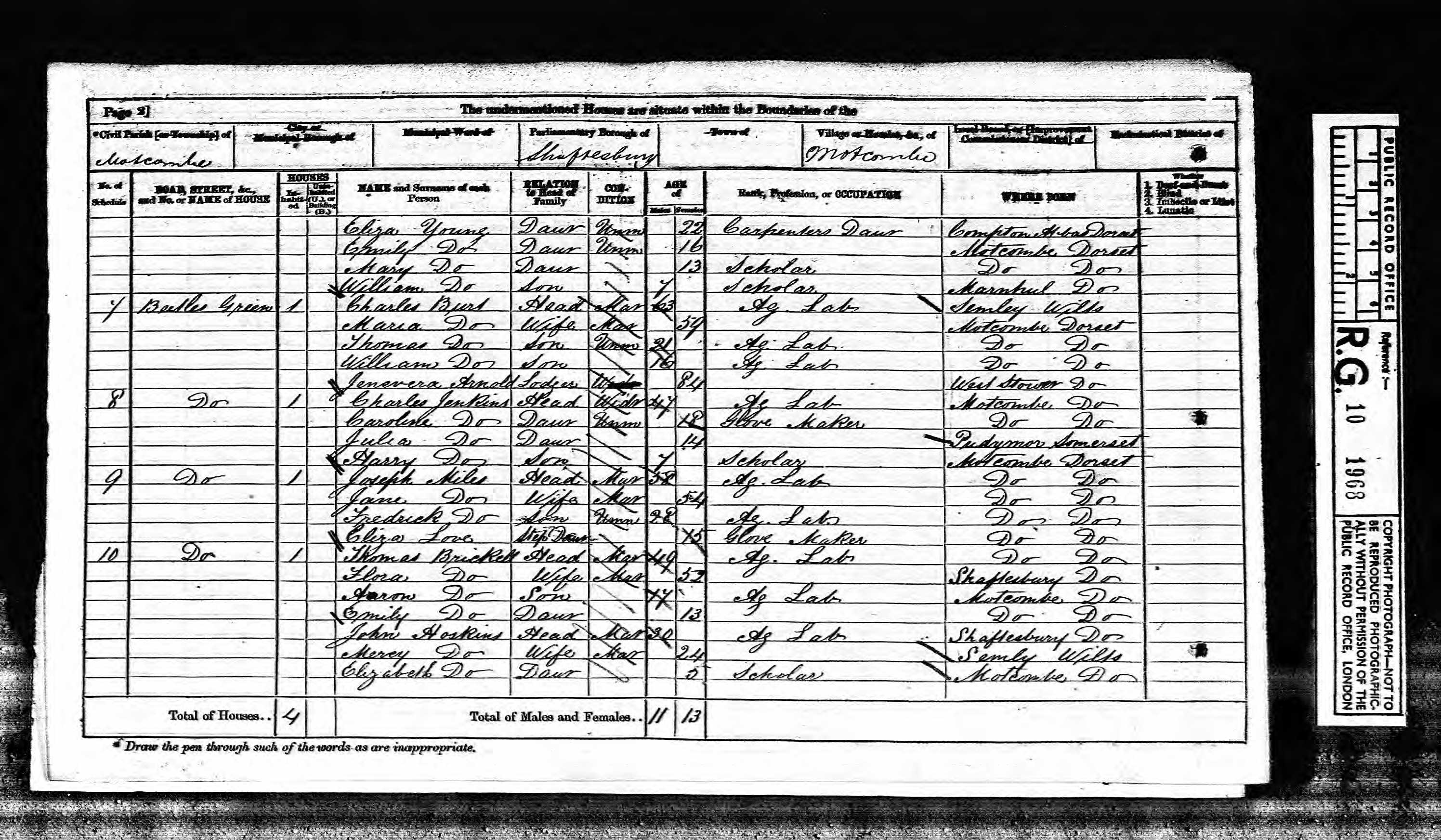 • Lived at: Beetles Green, 1871, Motcombe, Dorset, England.